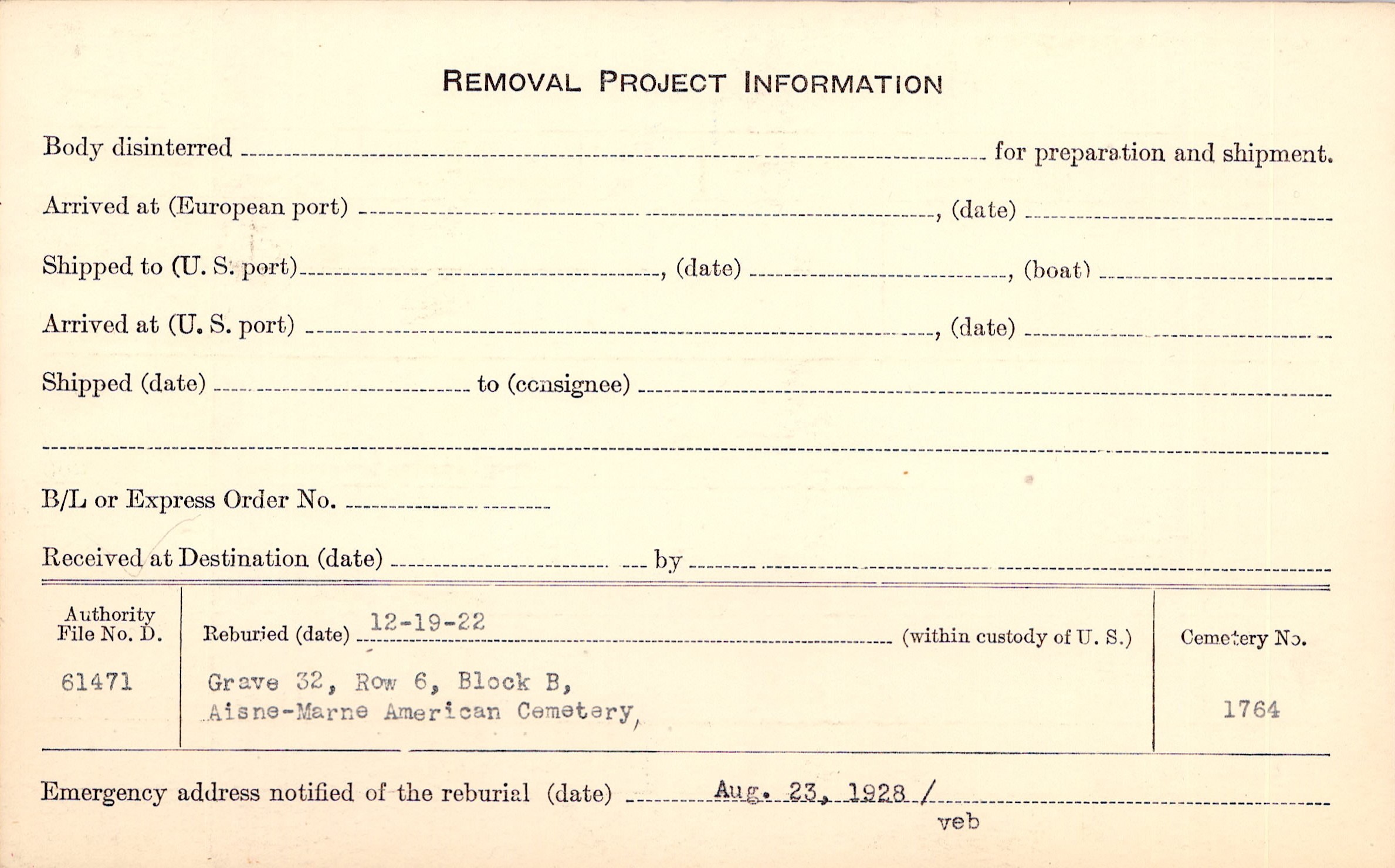 | Reburied (date): |
