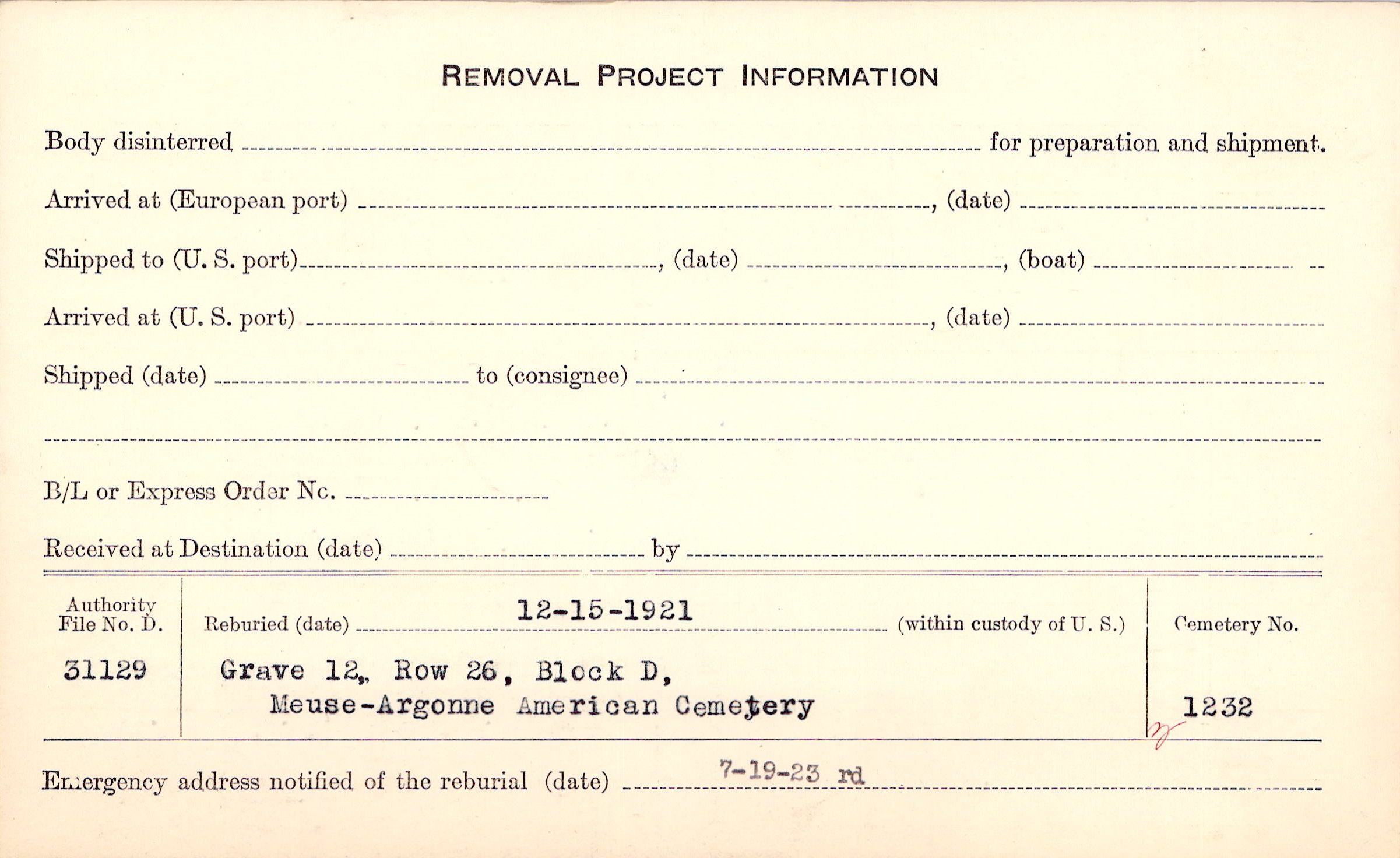 Grave 23, Section 37, Plot 1, Argonne American Cemetery, Romagne-sous-Montfaucon, Meuse