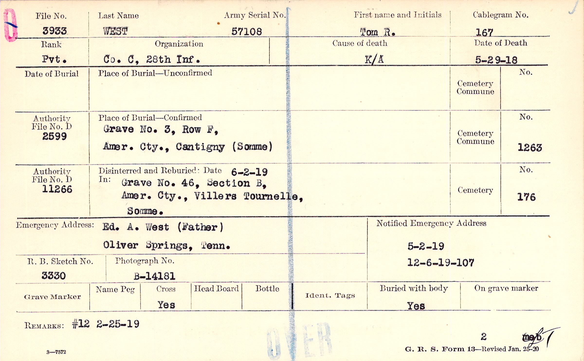 Grave 3, Row F, ,Amer. Cty., Cantigny (Somme)