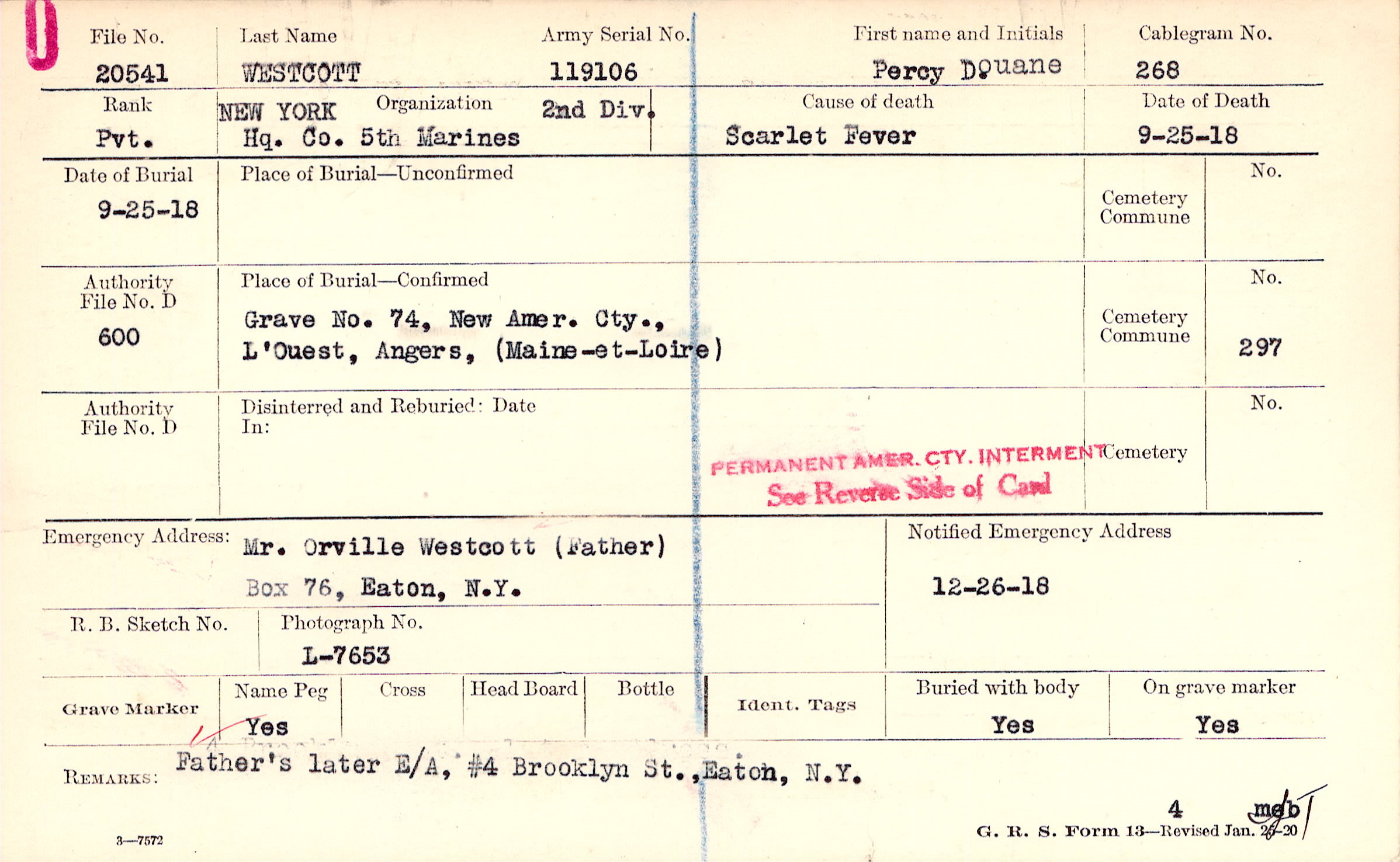 Grave 74, New Amer. Cty., L'Ouest, Angers, Maine-et-Loire