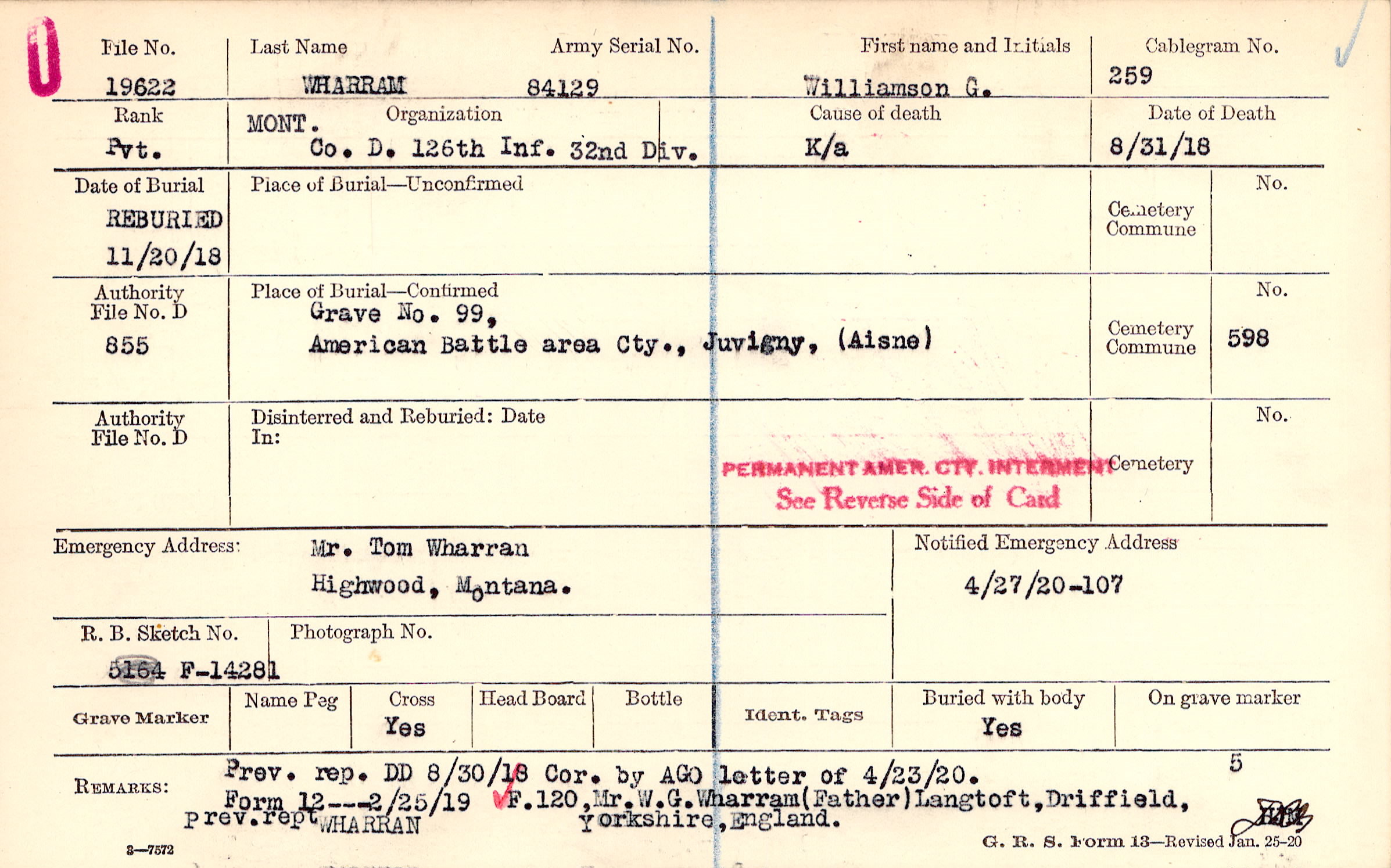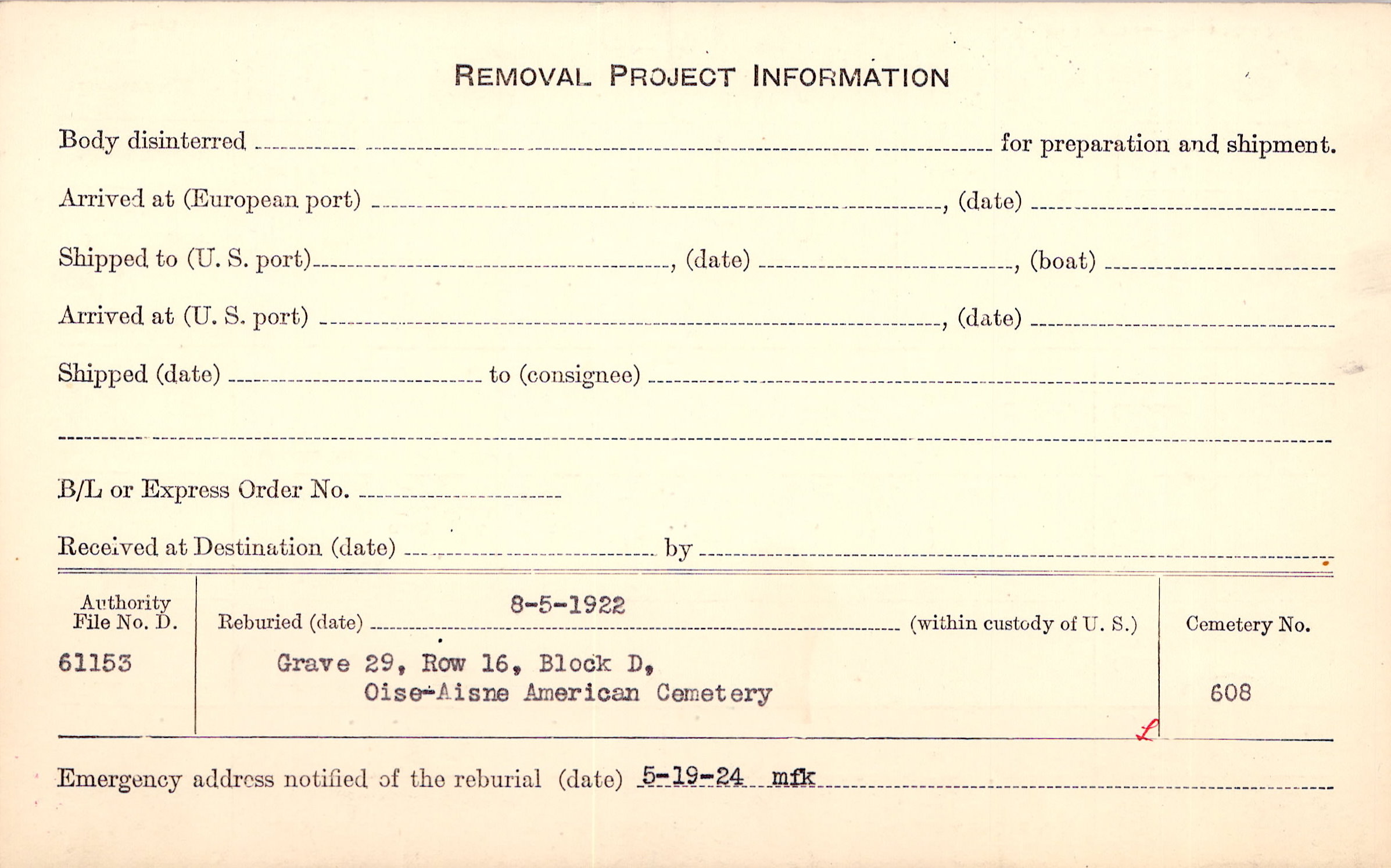Grave 99, American Battle area Cty., Juvigny, Aisne