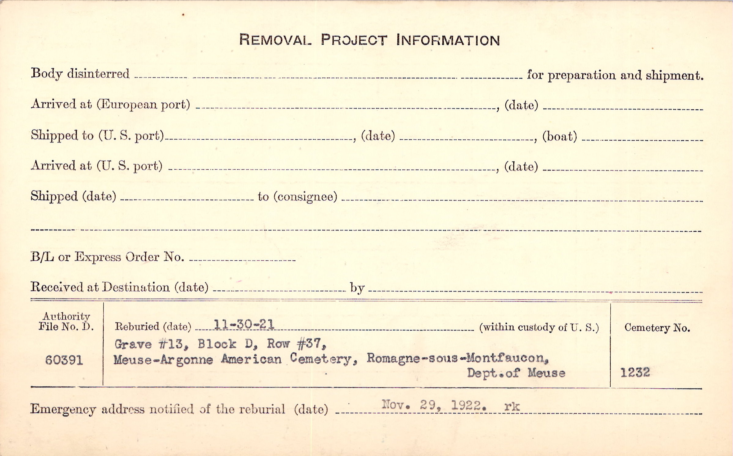 | Permanent Burial in Foreign Cemetery |