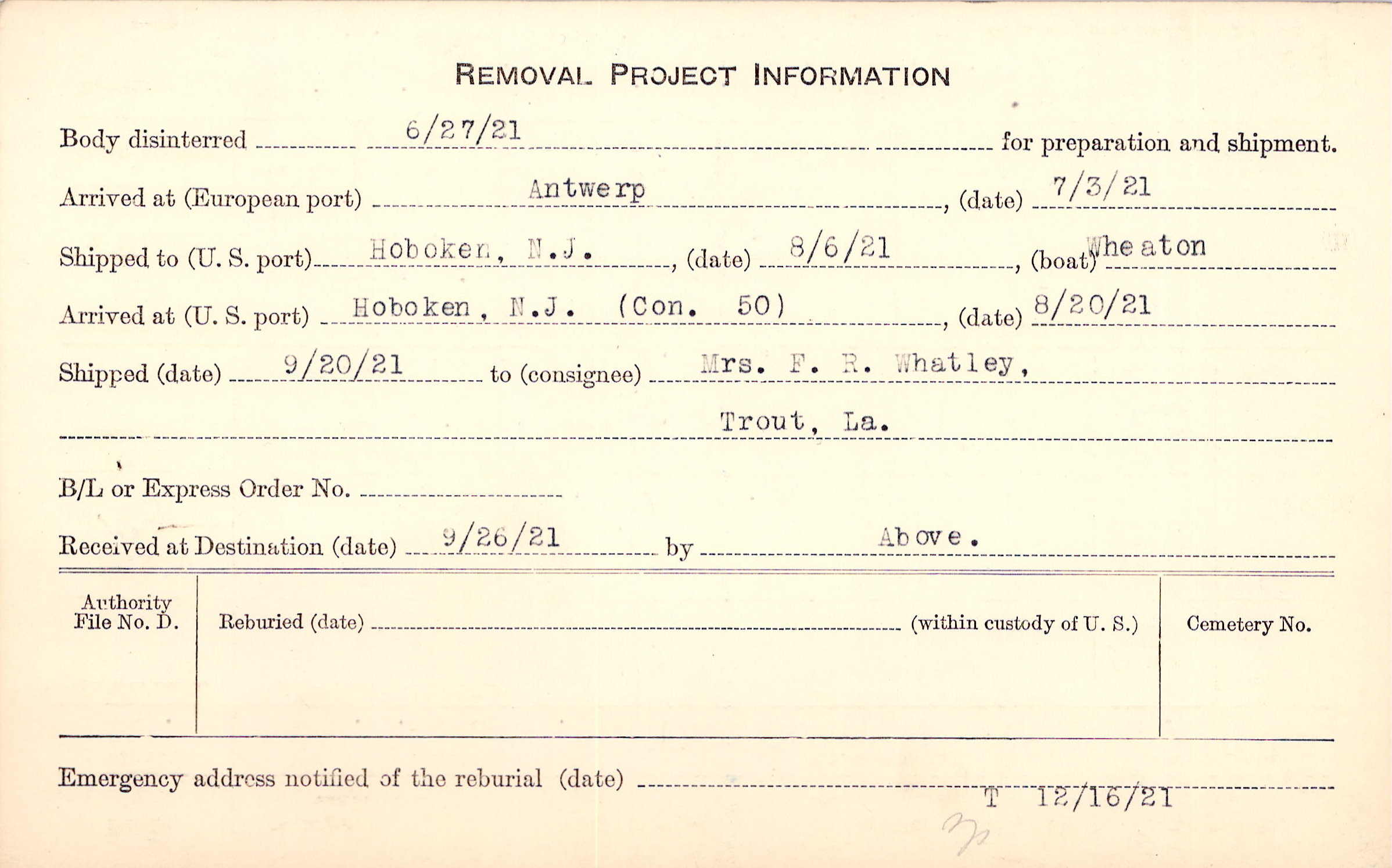 CD prev. rept. as K/a DD prev. rept. as 10/11/18. NR Prev. rept as Mrs. Edna Whatley (Mother) Eden, La. Auth. A.G.O. letter 4/13/20., F115 - 4/9/21 198 - Sec 43