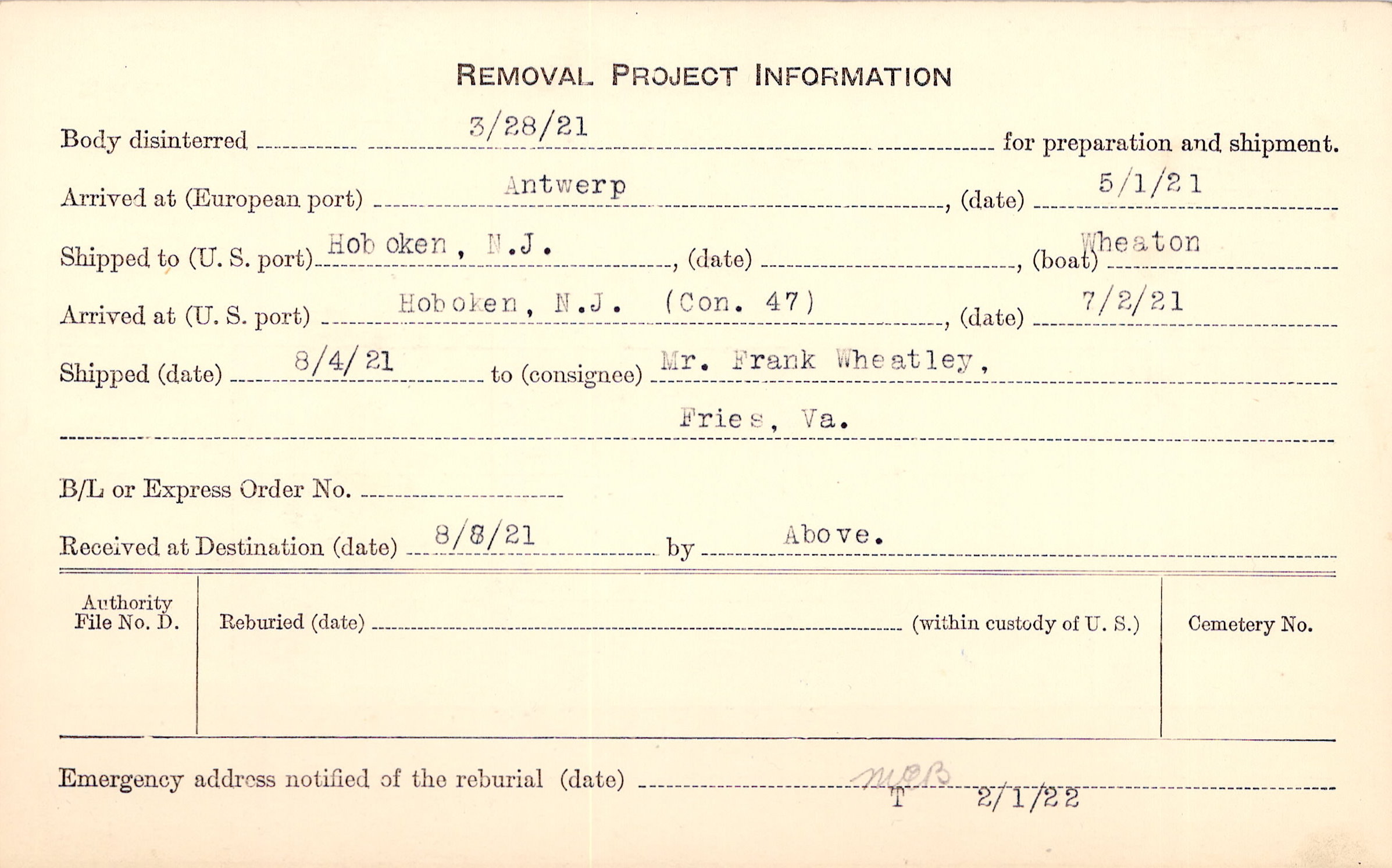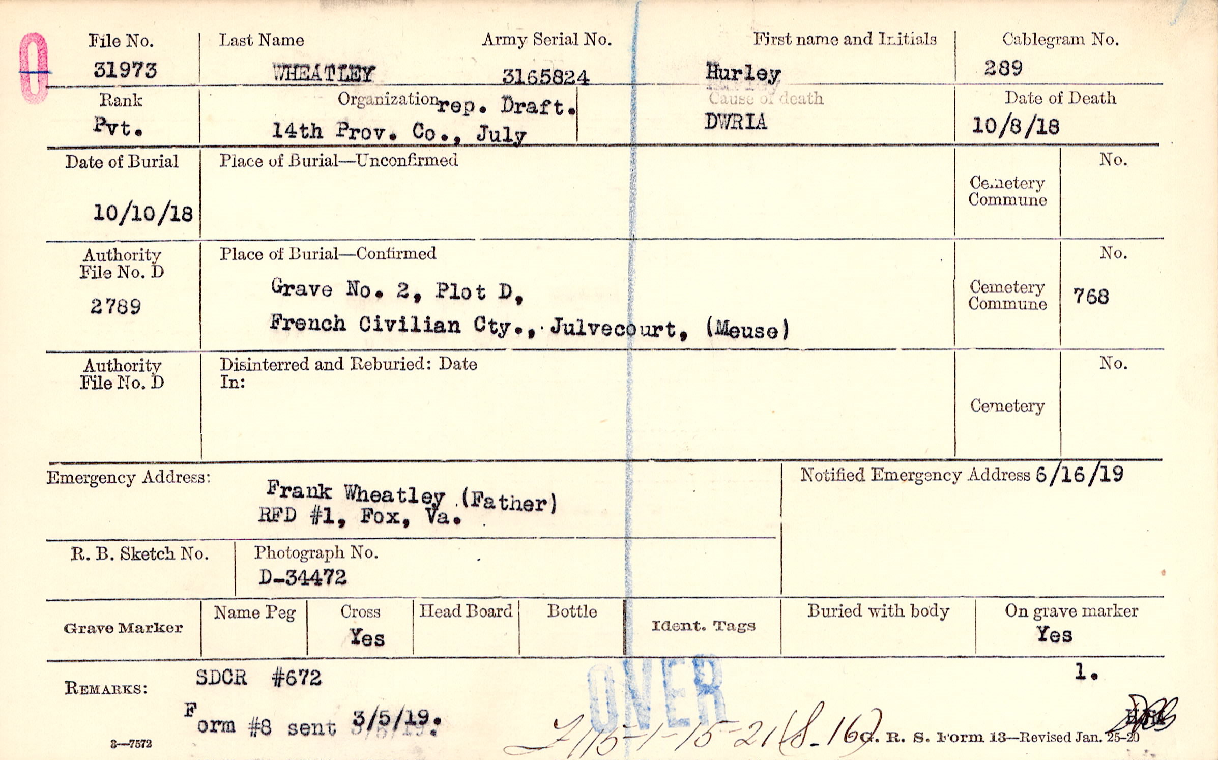 Frank Wheatley (Father), RFD #1. Fox, Va.