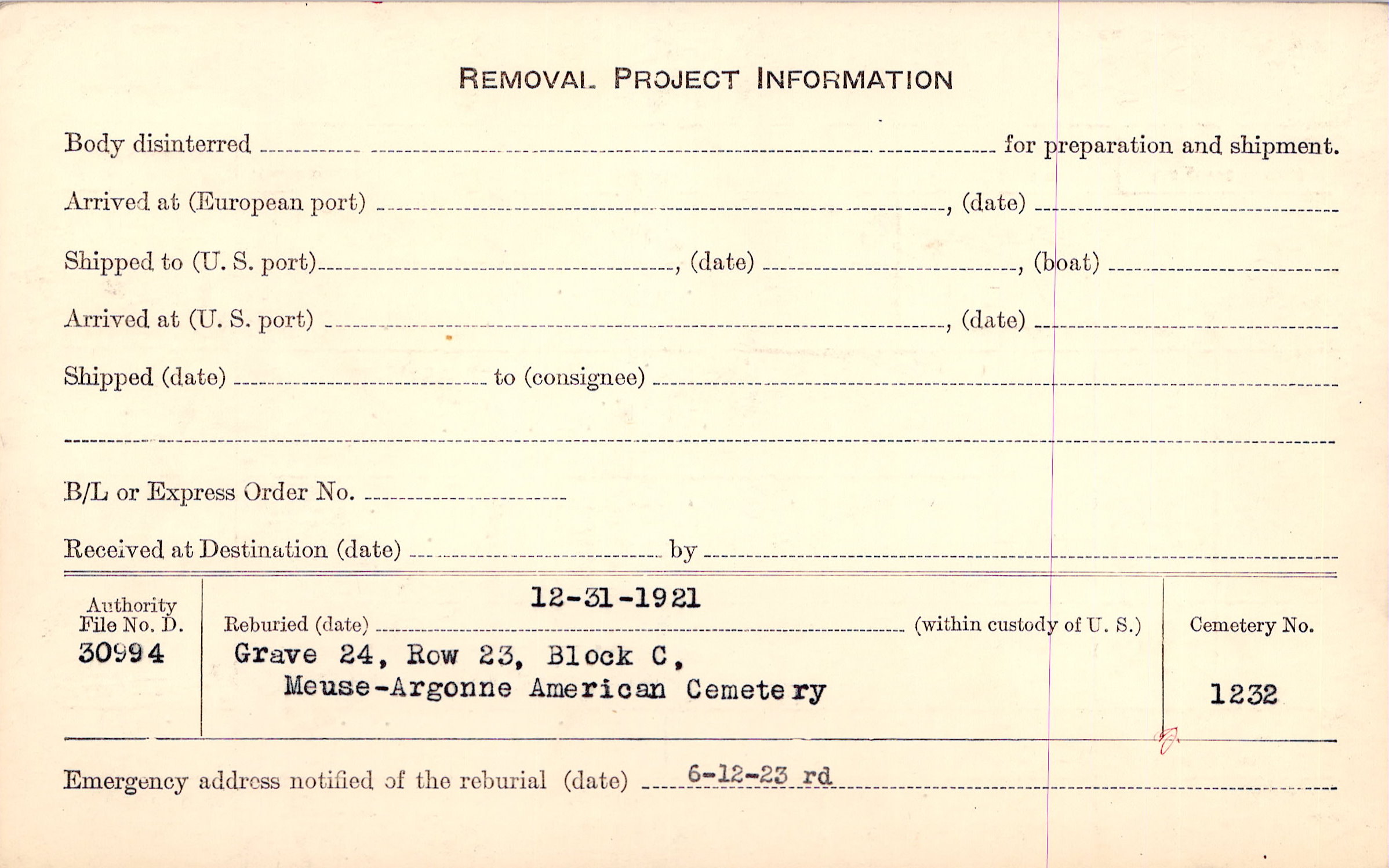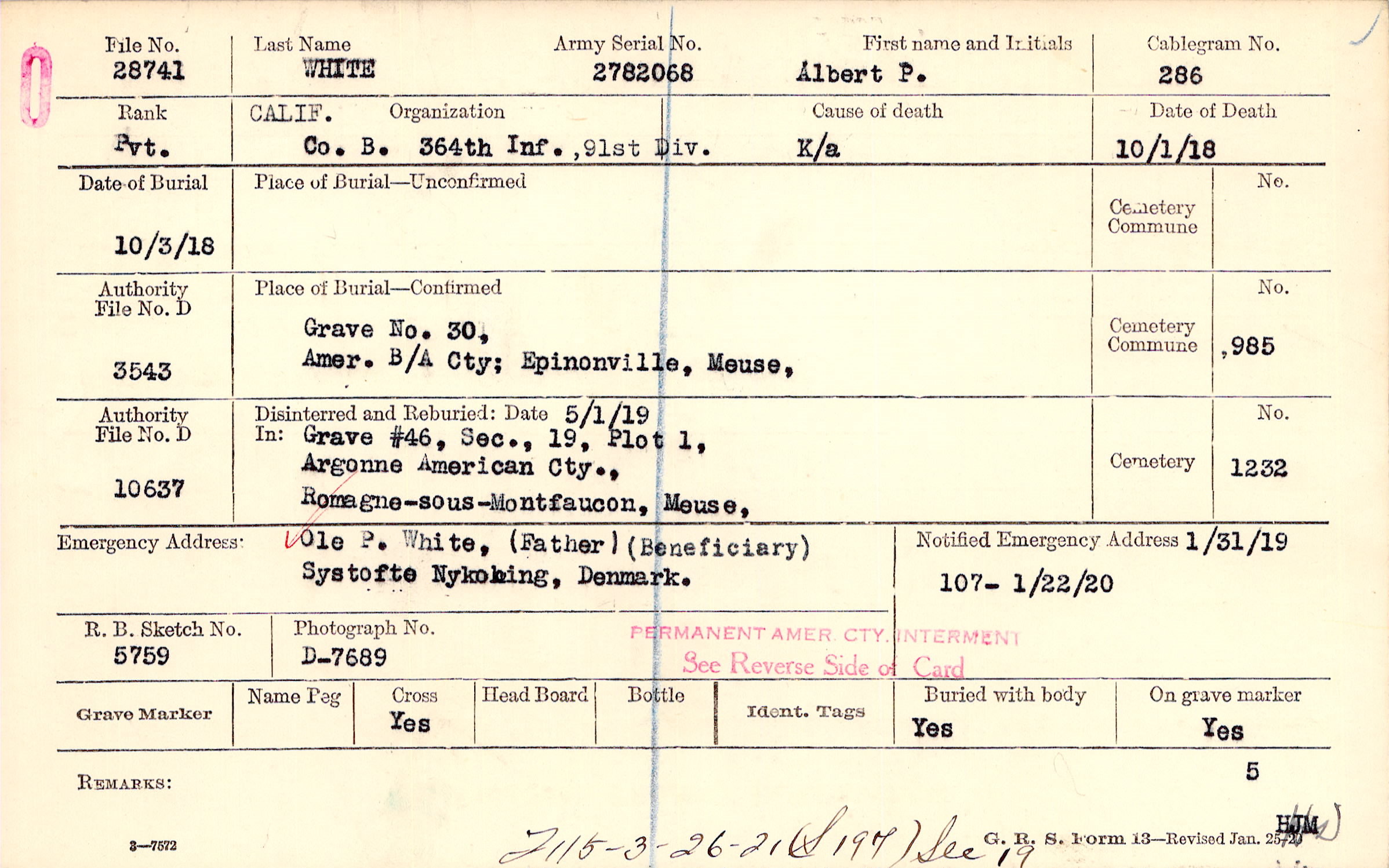 Grave 30, Amer. B/A Cty; Epinonville, Meuse.
