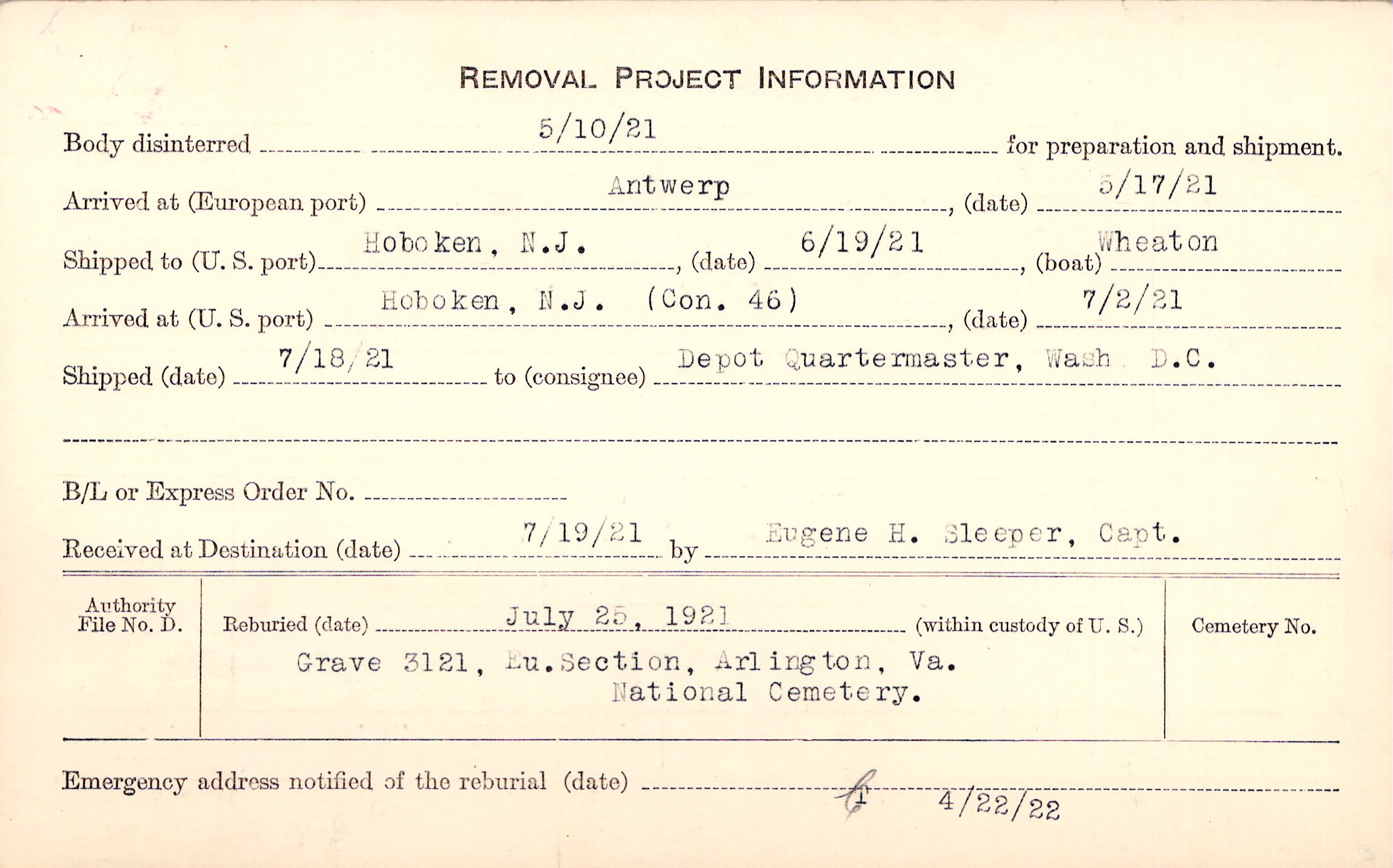1/22/1919, Form 107: 1/29/19 Form 21: