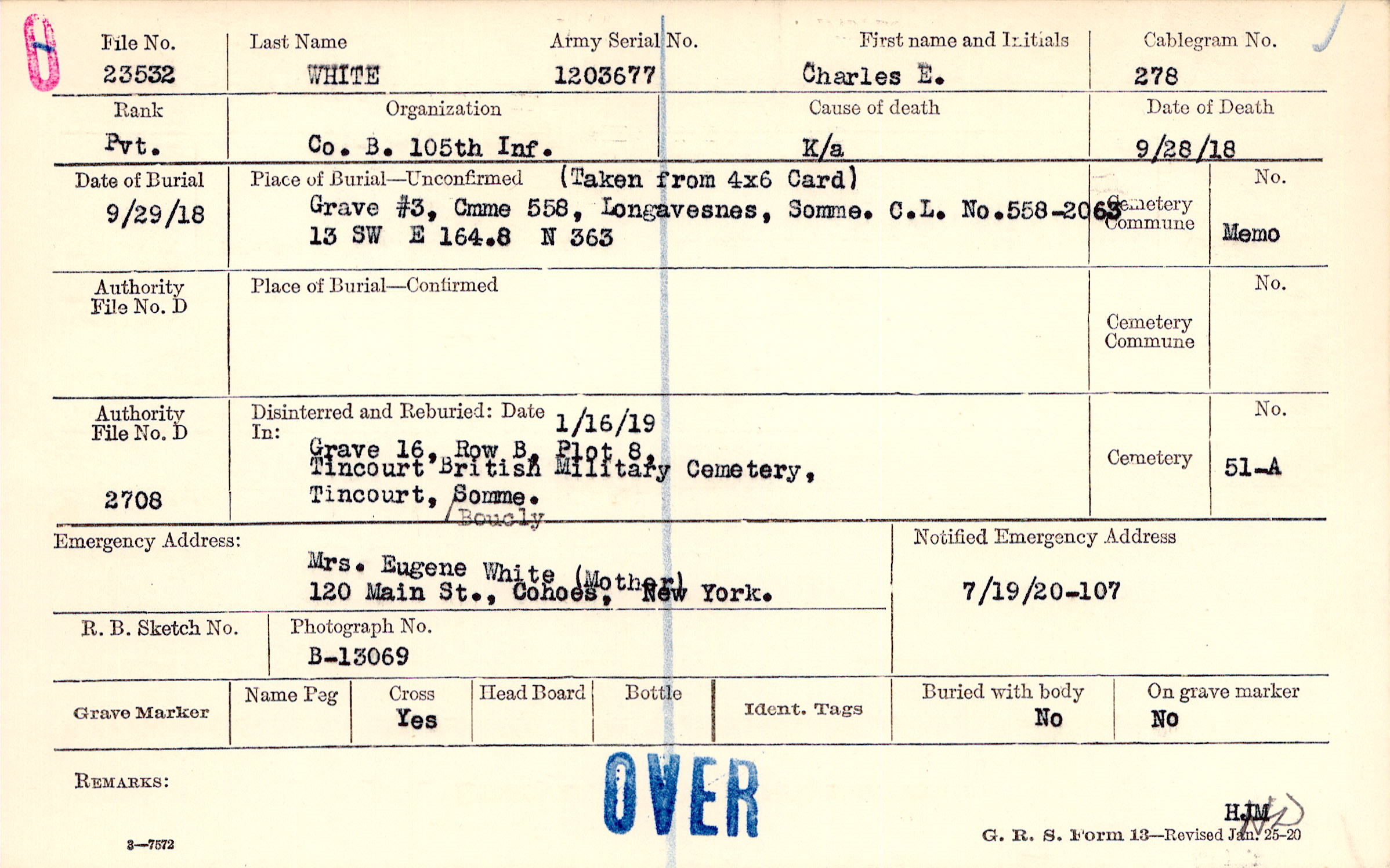 Grave #3, Cmme 558, Longavesnes, Somme, C.L. No. 558-2063, 13 SW