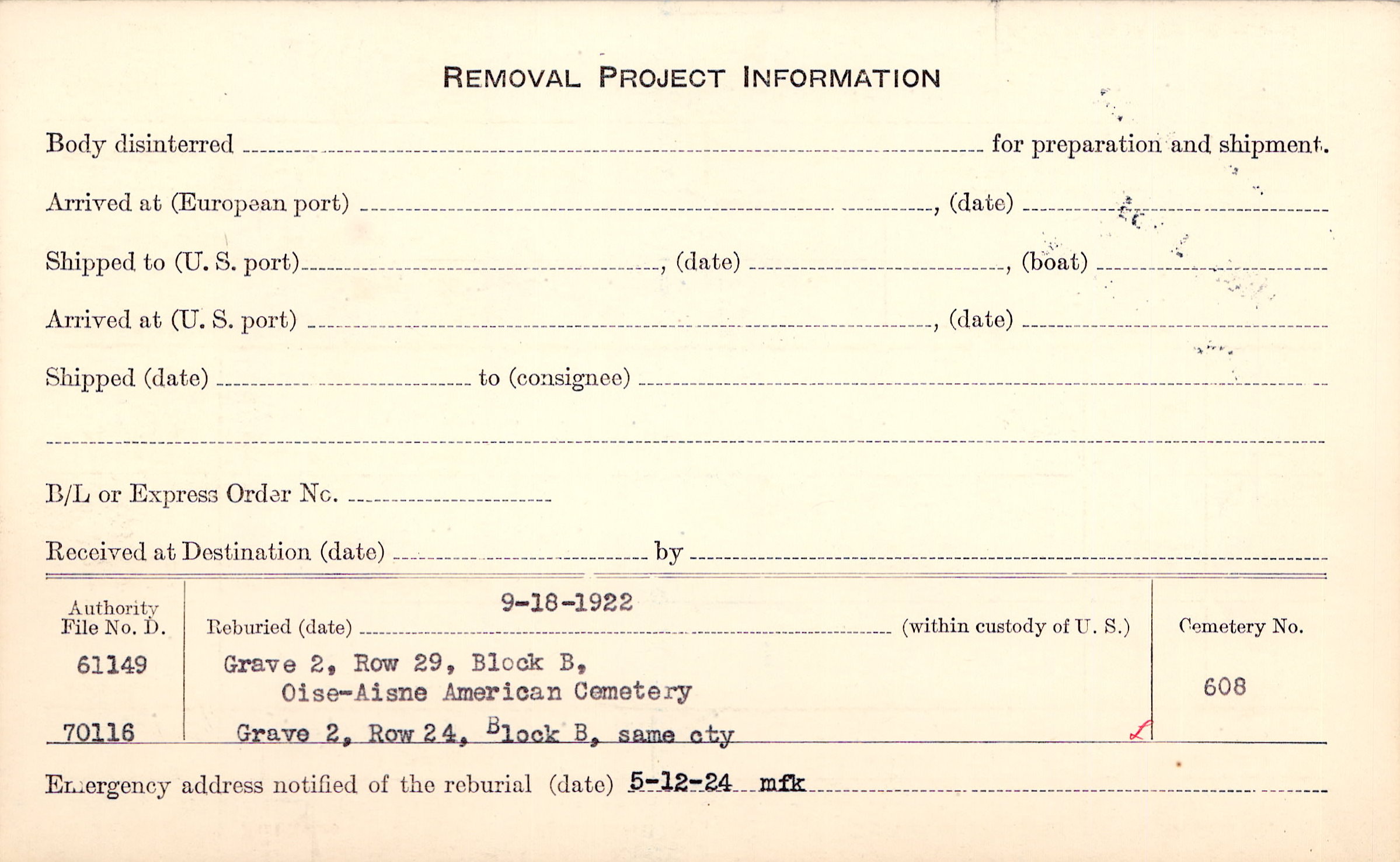 Grave #386, Amer. B/A Cty., Juvigny, Aisne.