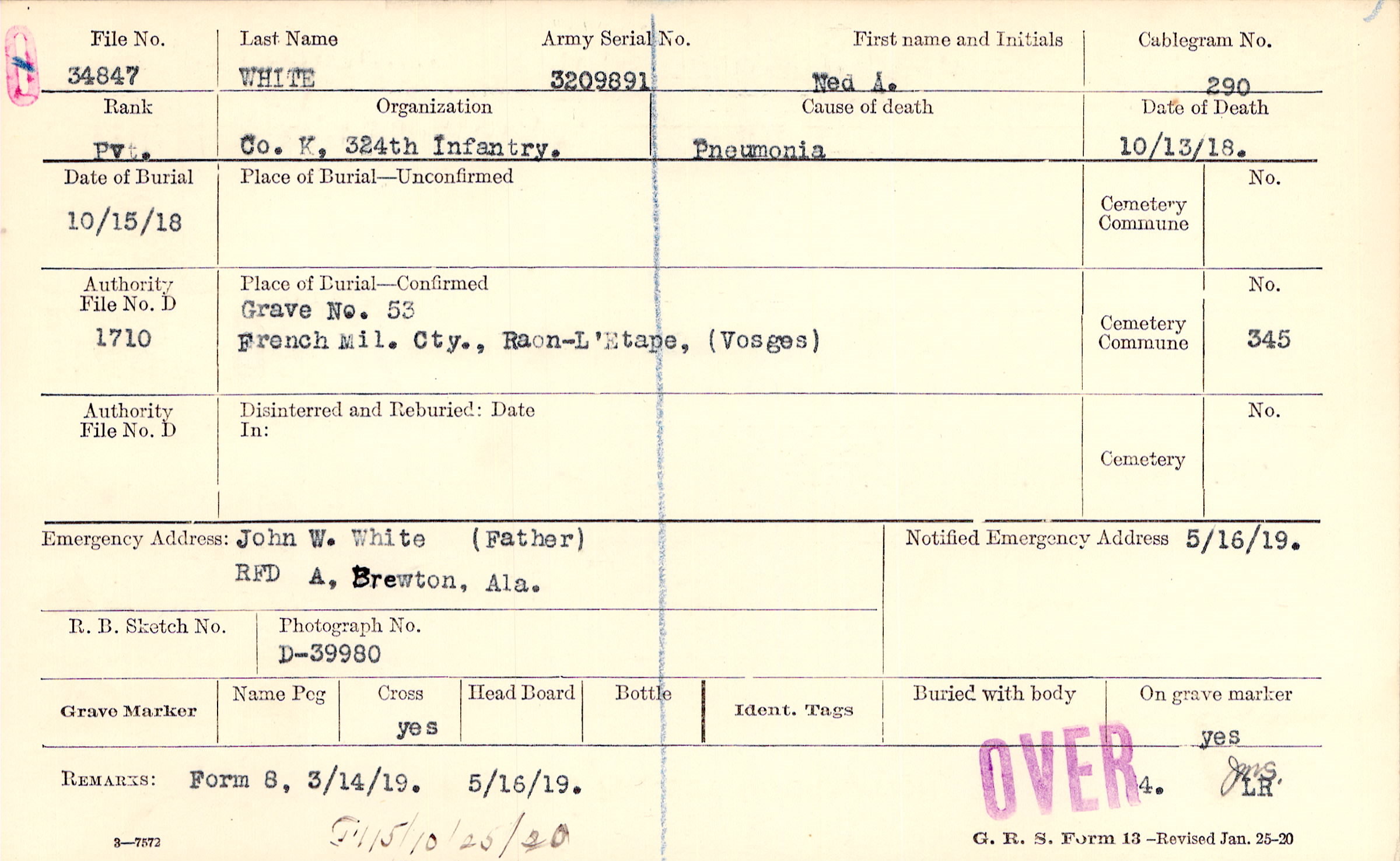 John W. White (Father), RFD A, Brewton, Ala.