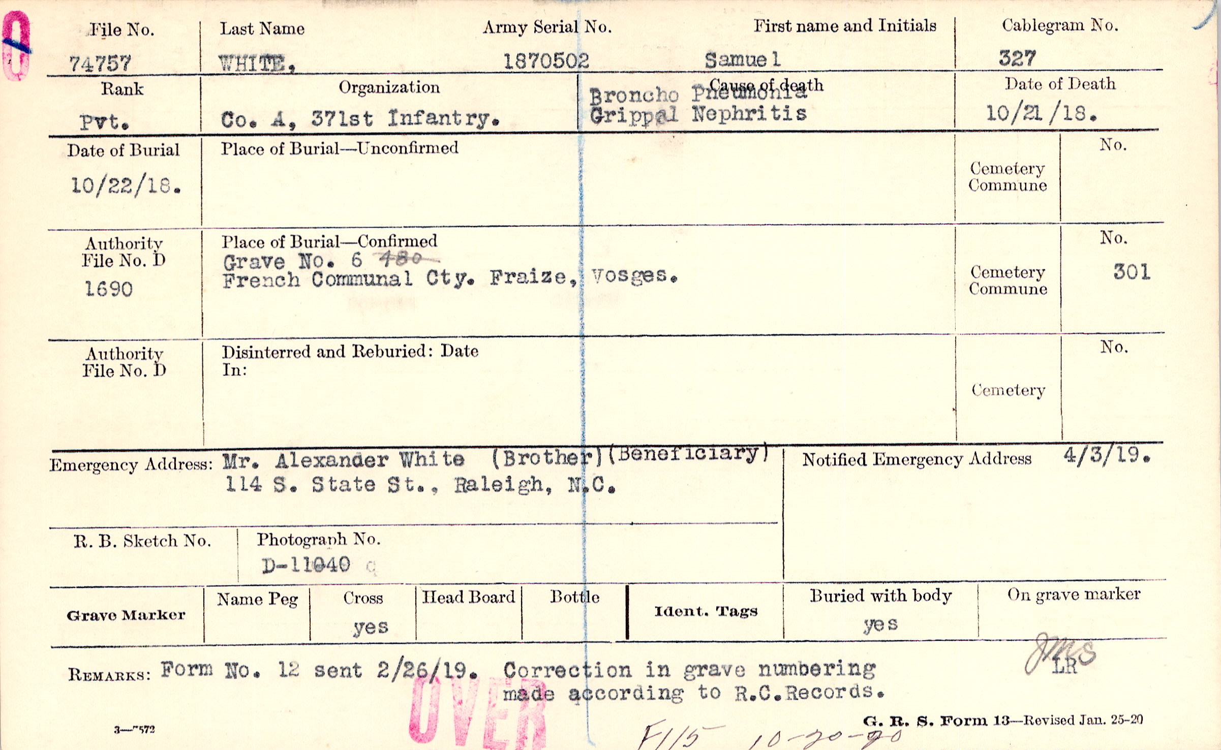 Grave 6, French Communal Cty., Fraize, Vosges.