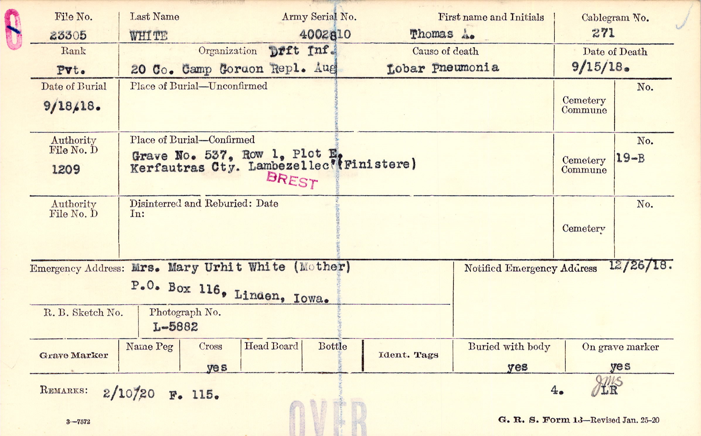 Grave 537, Row 1, Plot E, Kerfautras Cty., Lambezellec, (Finistere)