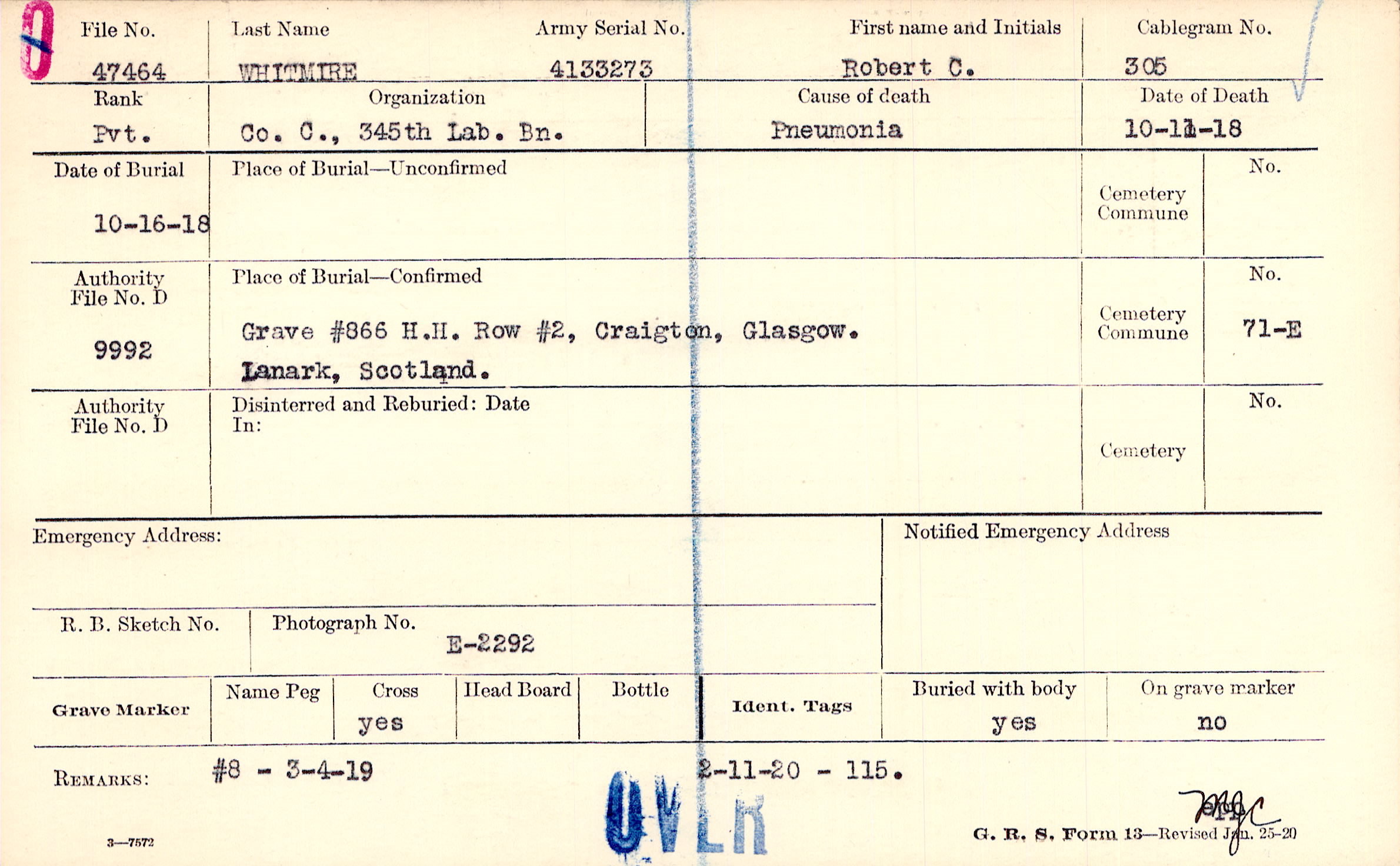 Grave #866, H. H. ,Row #2, Craigton, Glasgow, Lanark, Scotland