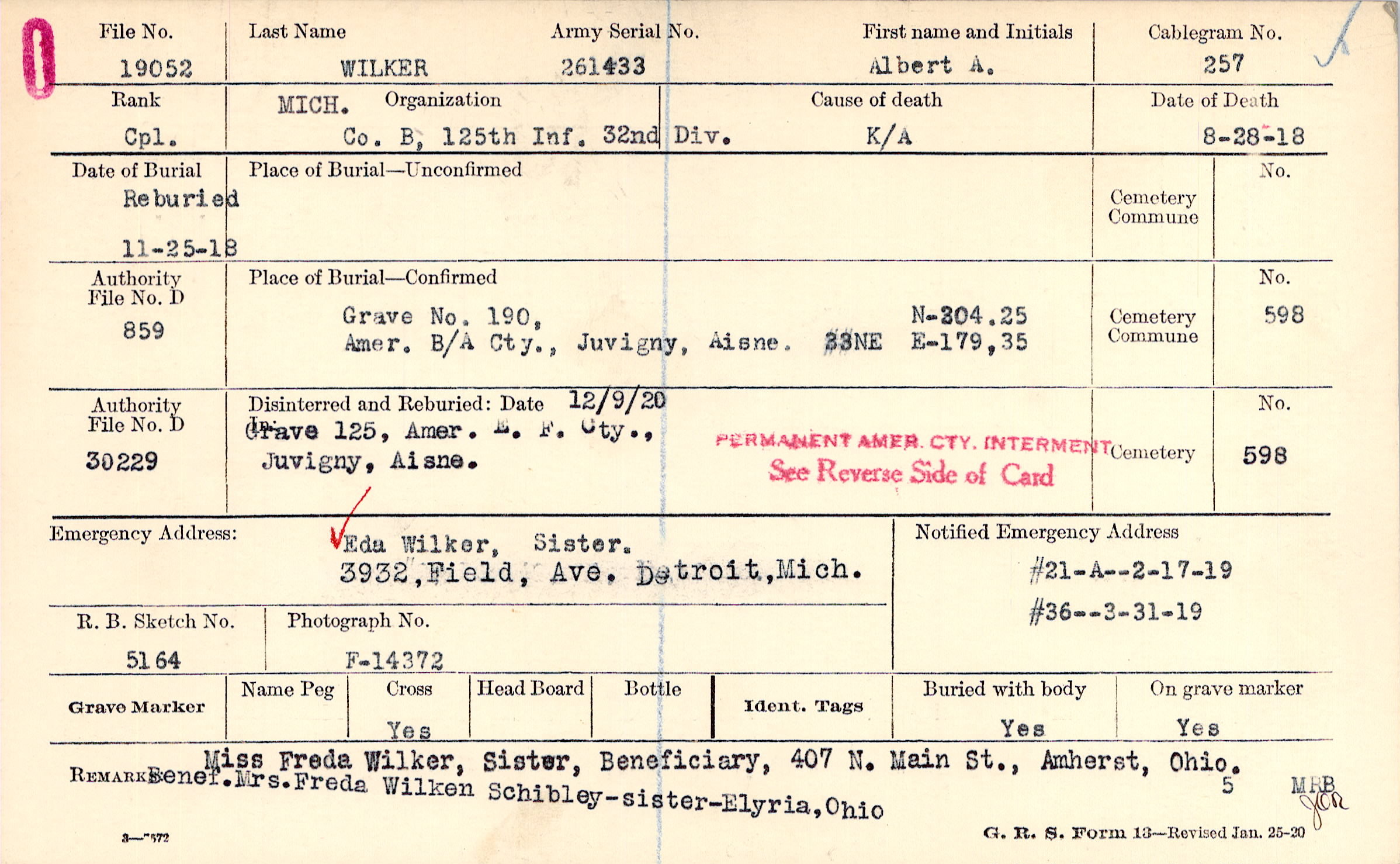 Eda Wilker (Sister), 3932, Field, Ave, Detroit, Mich.