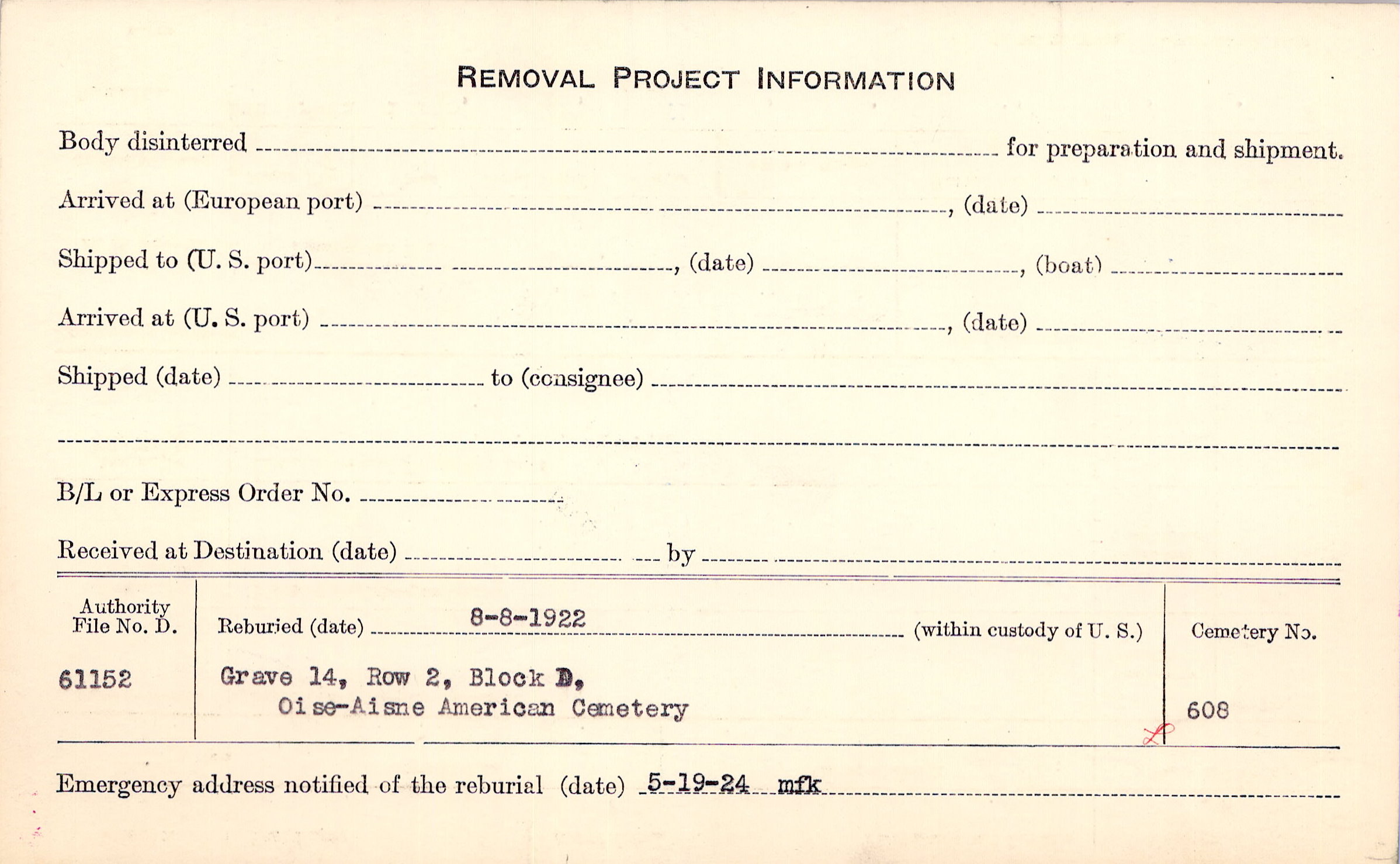 Grave 190, Amer. B/A Cty., Juvigny, Aisne., 33 NE