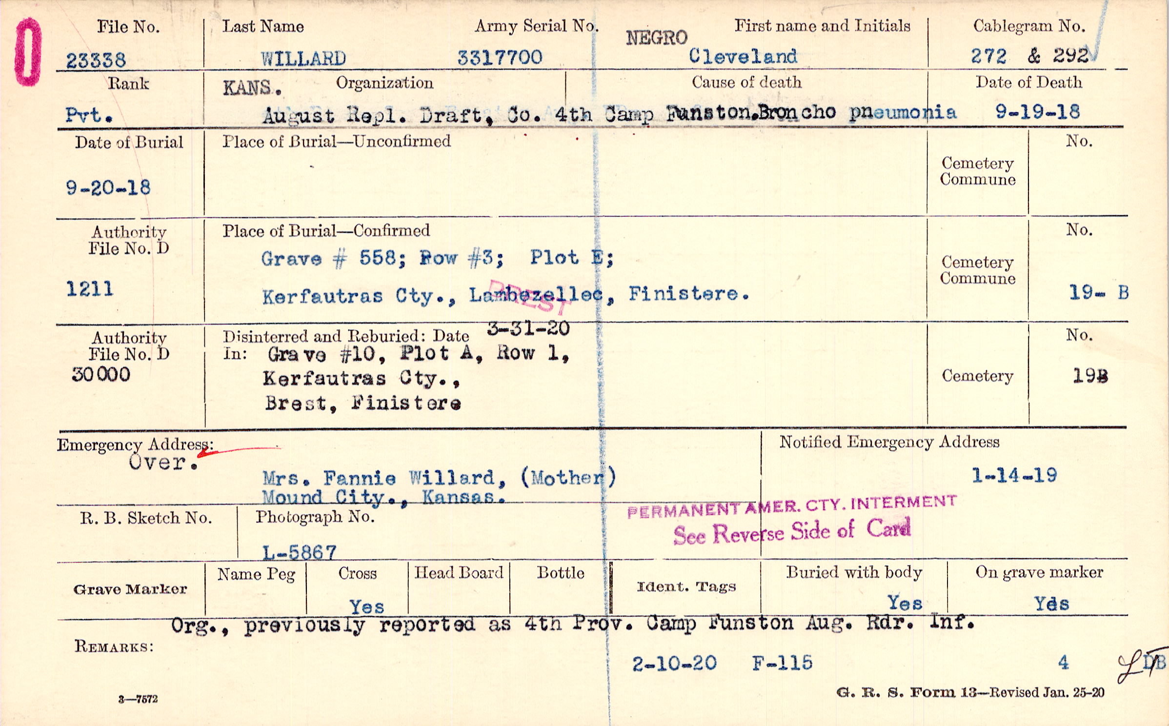 | Permanent Burial in Foreign Cemetery |