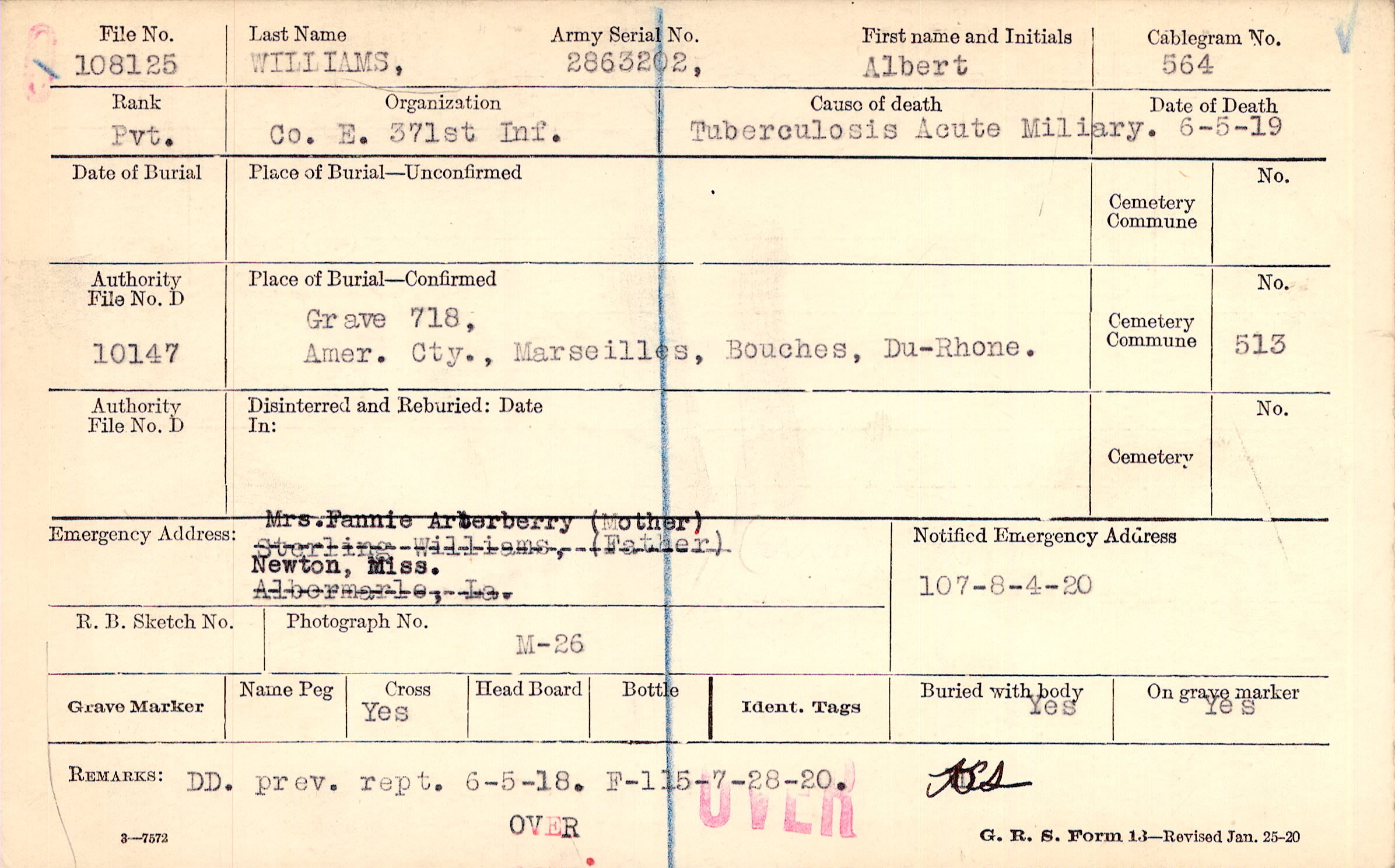 Grave 718, Amer. Cty., Marseilles, Bouches, Du-Rhone