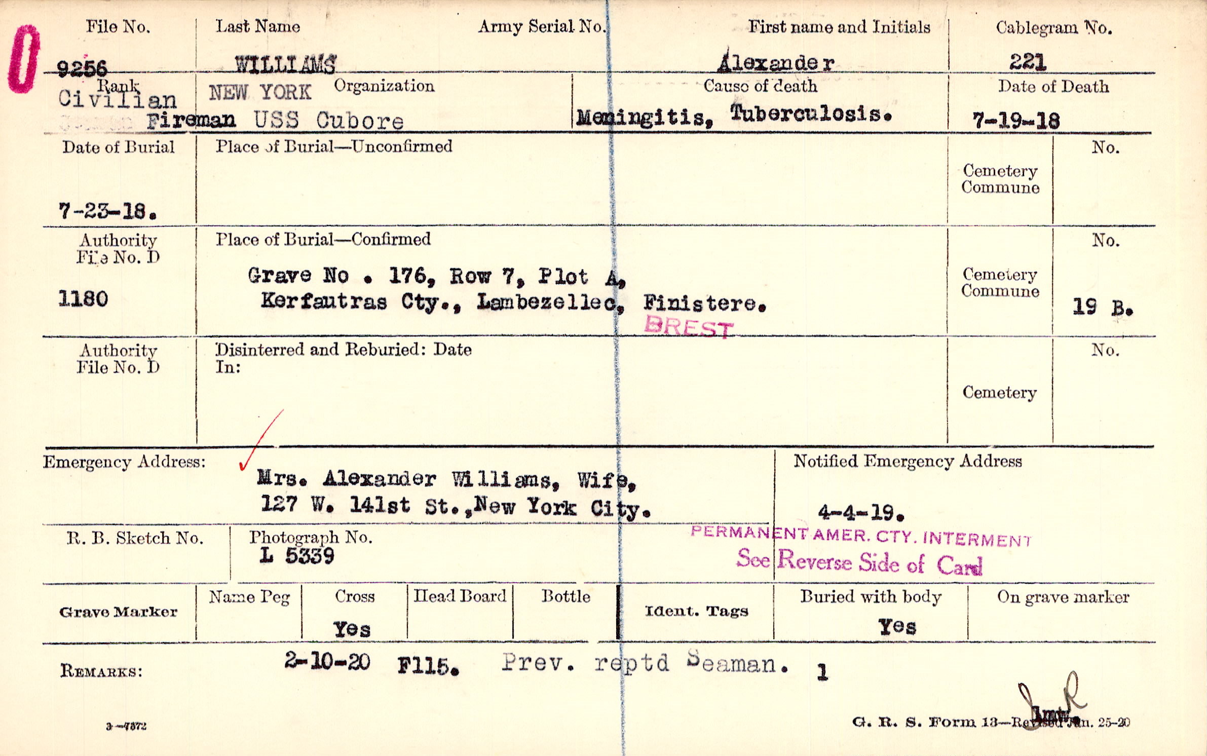 Grave 176, Row 7, Plot A, Kerfautras Cty., Lambezellec, Finistere.