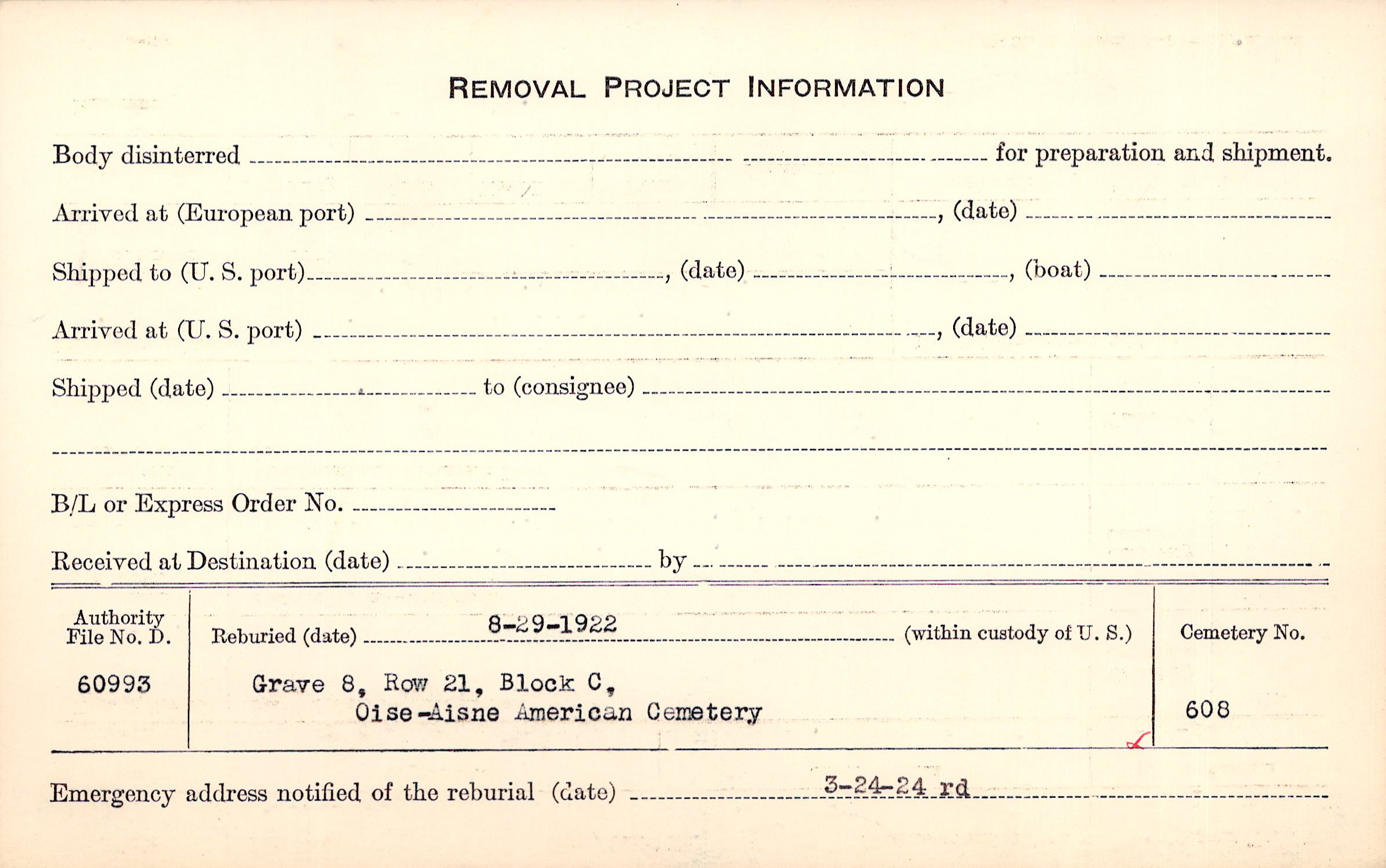 | Permanent Burial in Foreign Cemetery |