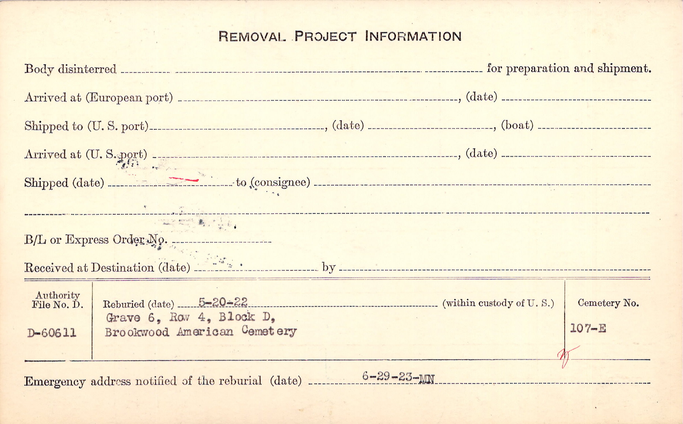 | Permanent Burial in Foreign Cemetery |