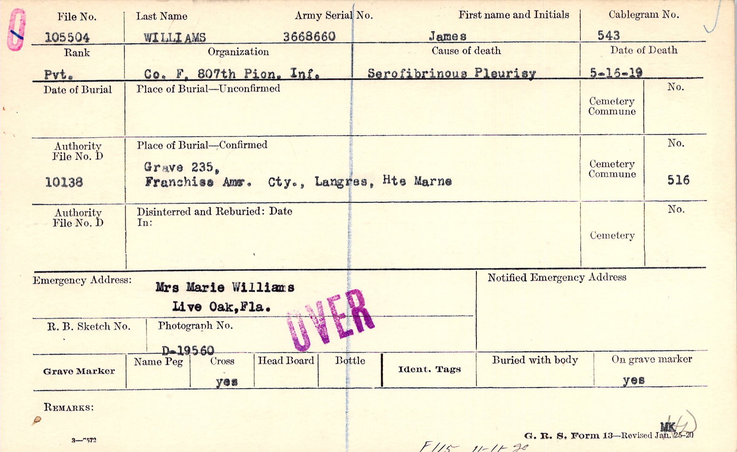 Grave 235, Franchise Amer. Cty., Langres, Hte Marne
