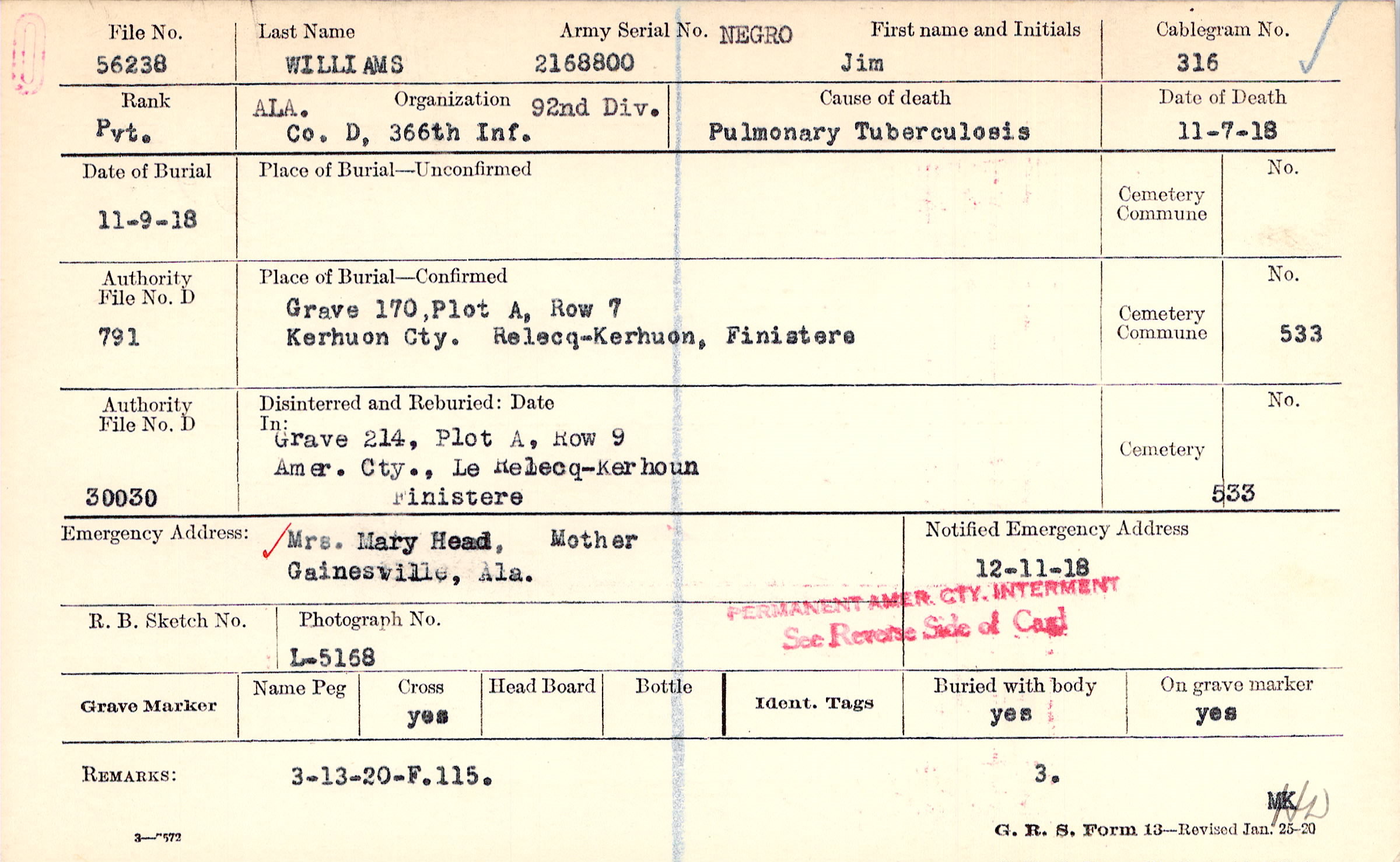 Place of Burial—Confirmed |