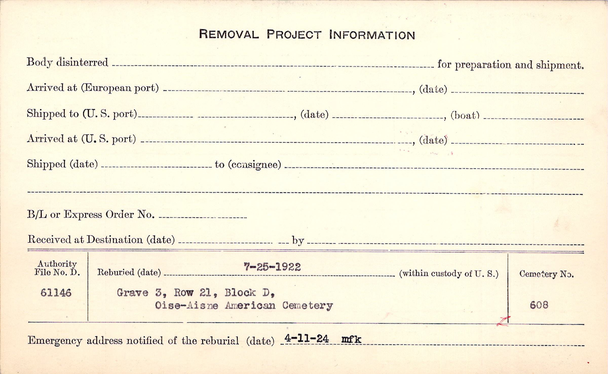 | Permanent Burial in Foreign Cemetery |
