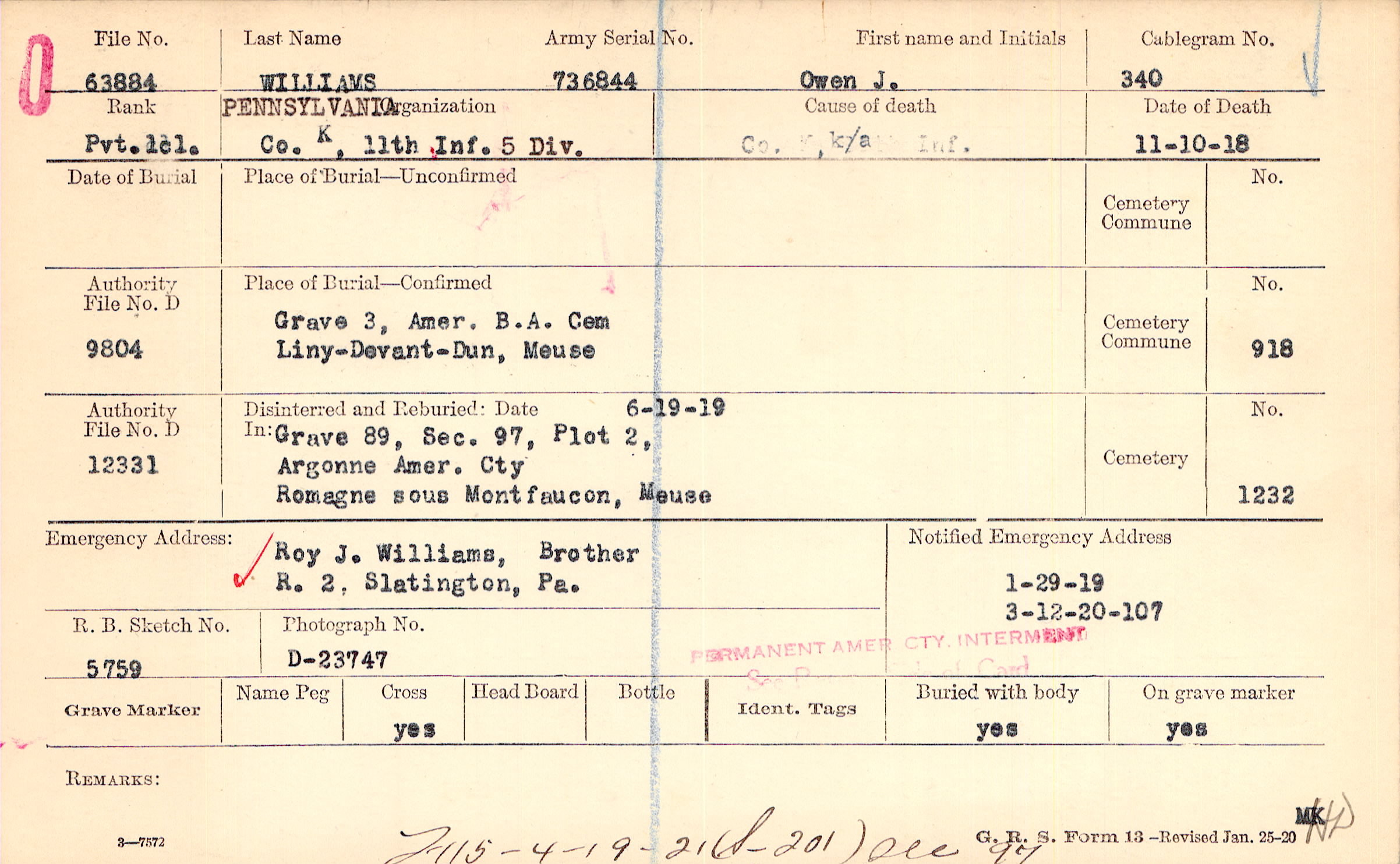 Grave 3, Amer. B/A Cty. ,Liny-Devant-Dun, Meuse