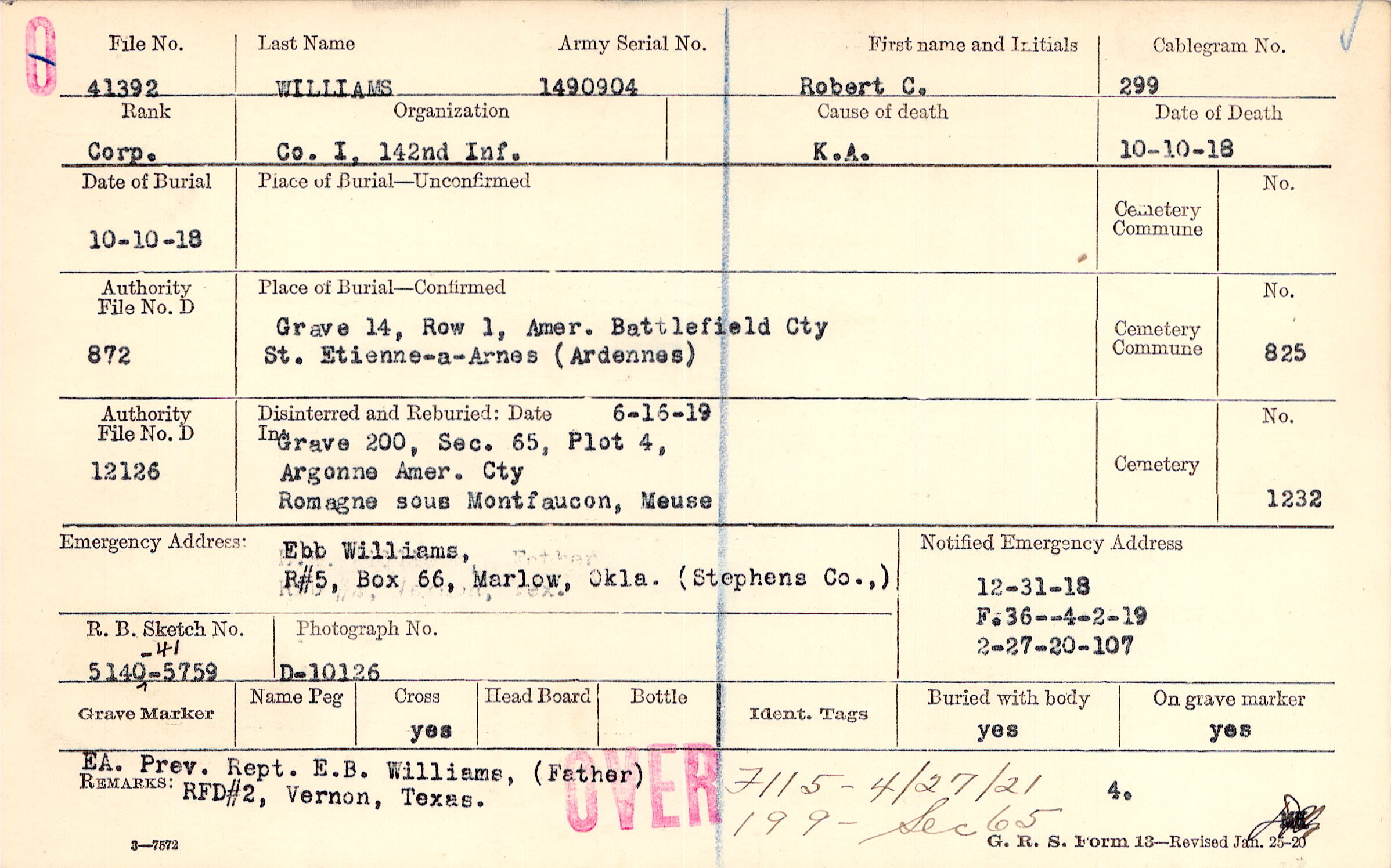 Ebb Williams, R#5, Box 66, Marlow, Okla. (Stephens Co.,), (Stephens Co.,)