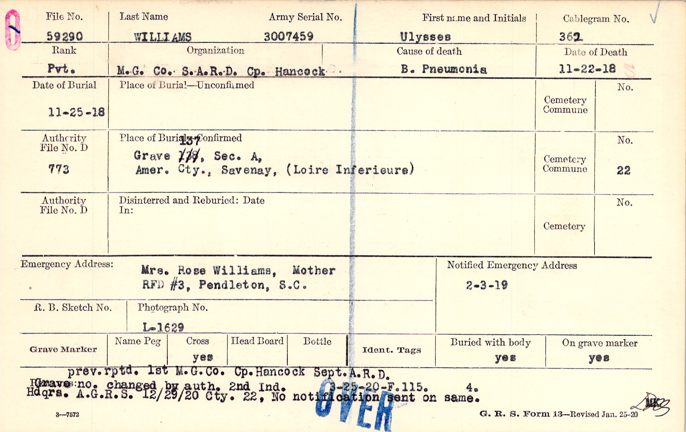 Grave 137, Sec./ A, Amer. Cty., Savanay, ( Loire Inferieure)
