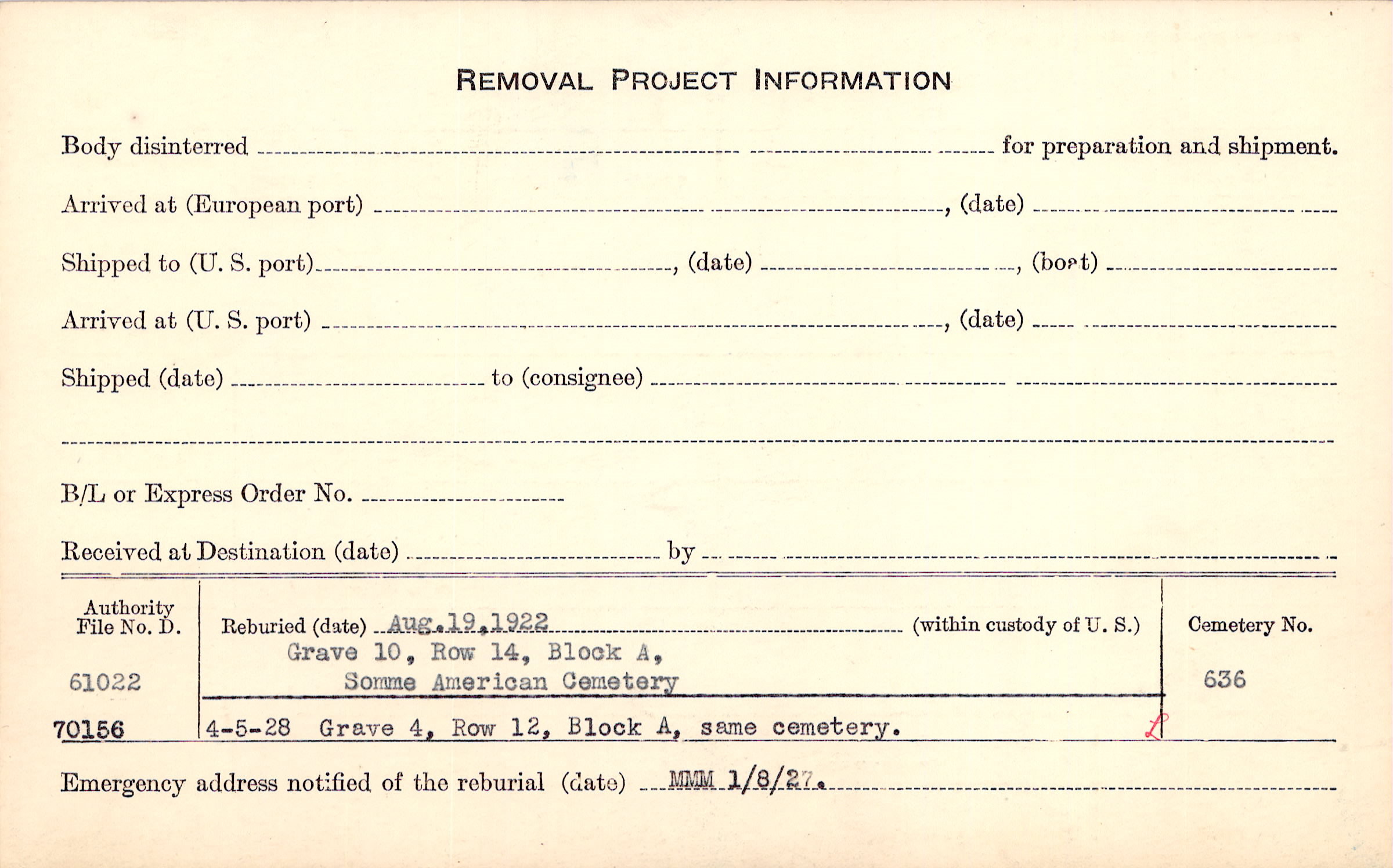 Prior Burial in Foreign Cemetery |