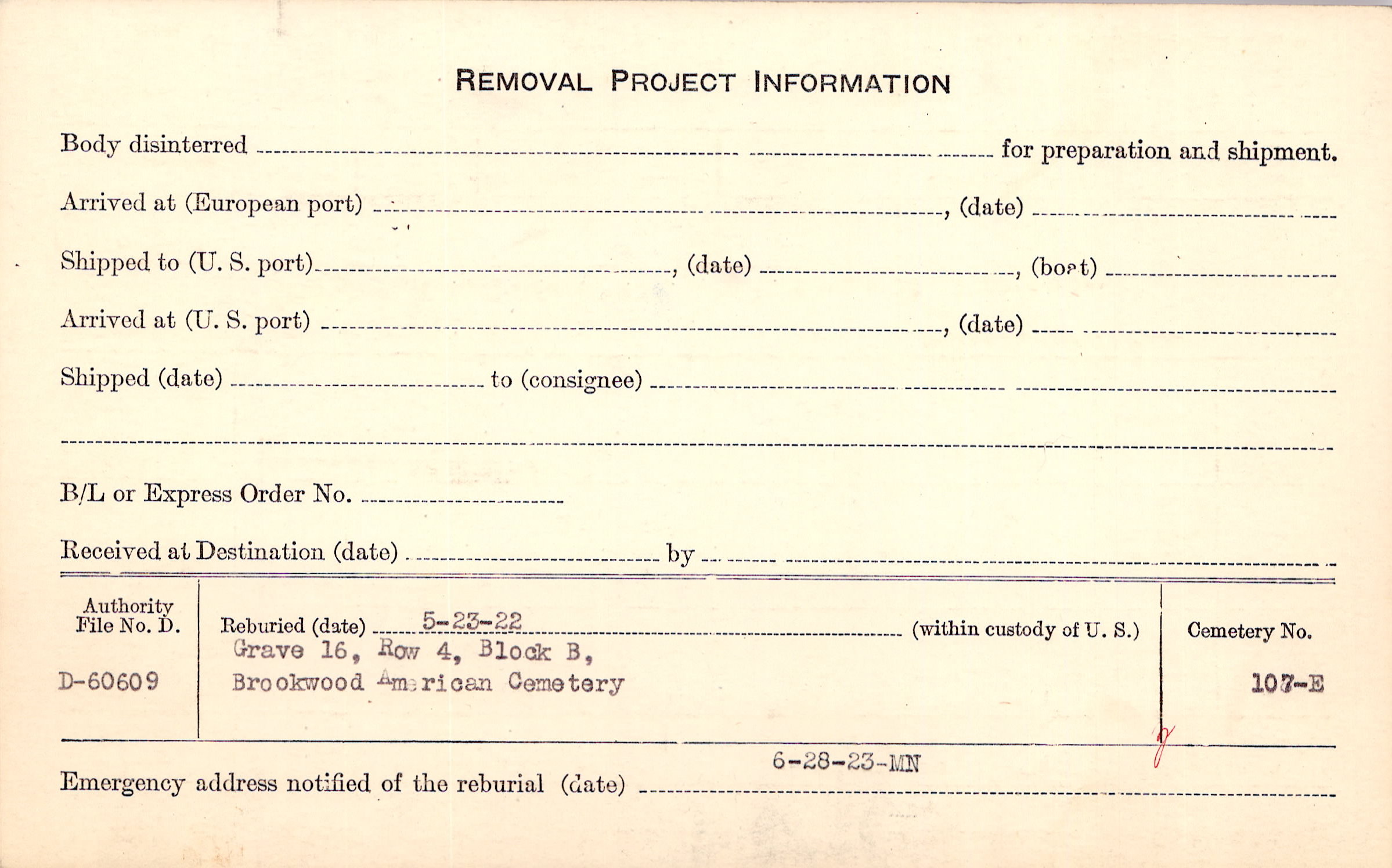 | Permanent Burial in Foreign Cemetery |