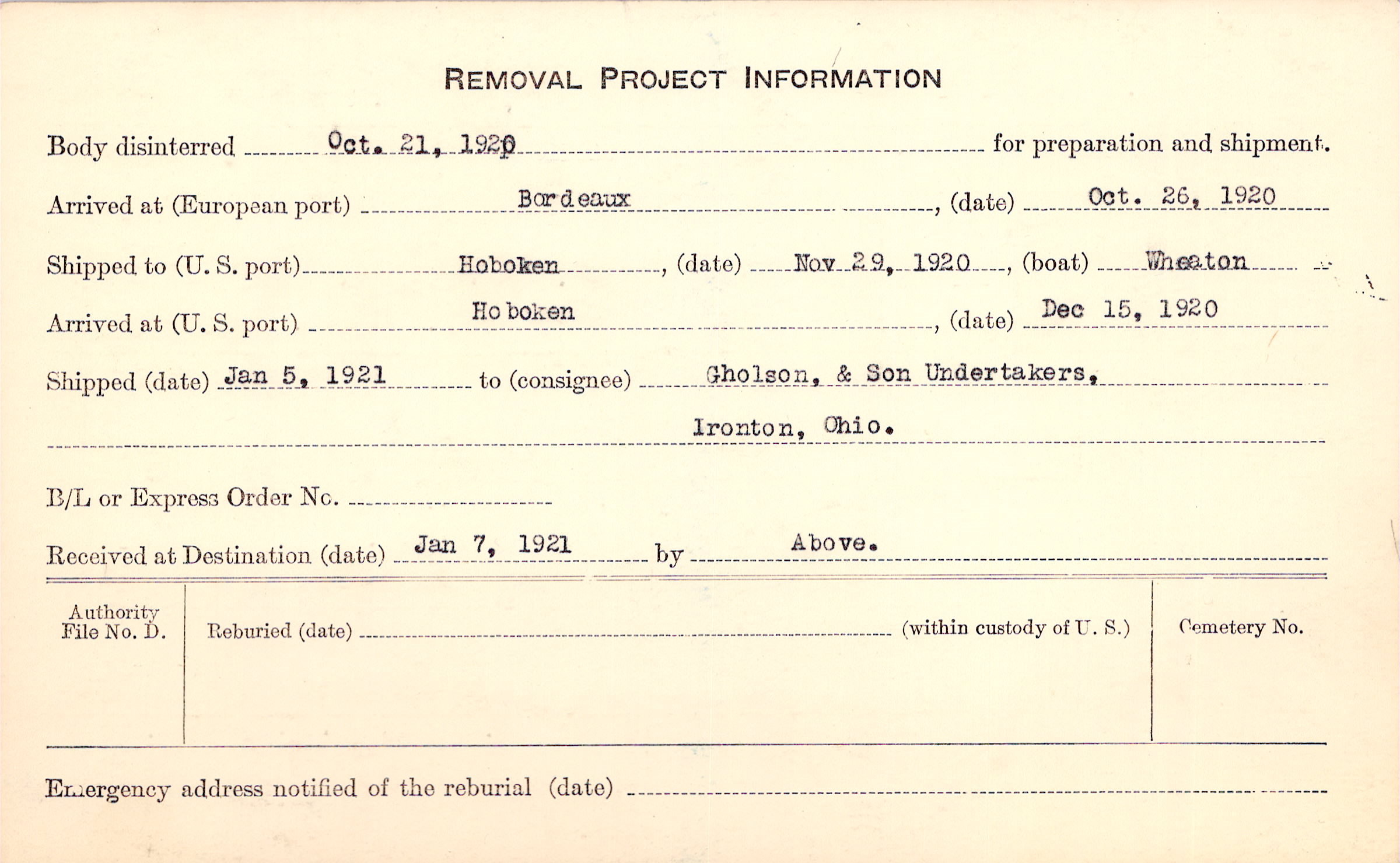 to Gholson, & Son Undertakers, Ironton, Ohio.