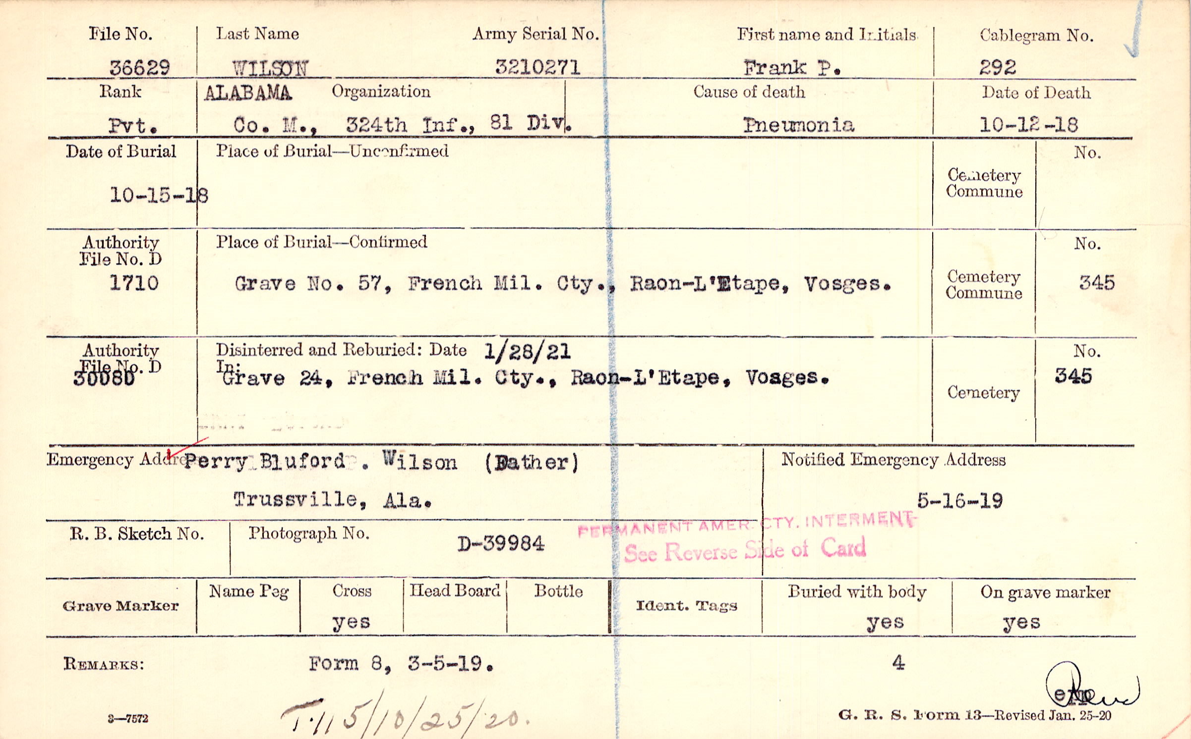 | Reburied (date): |