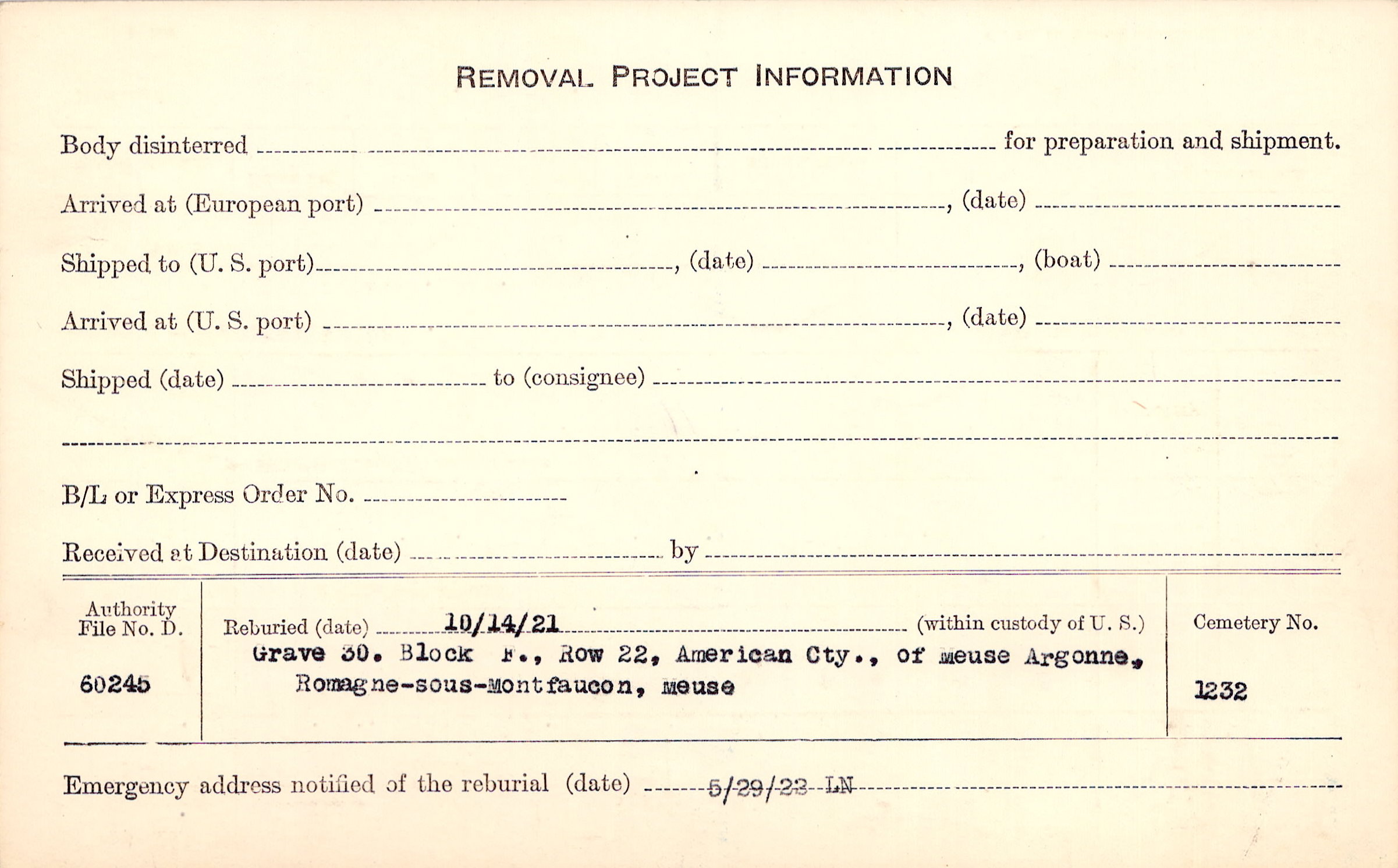 | Permanent Burial in Foreign Cemetery |