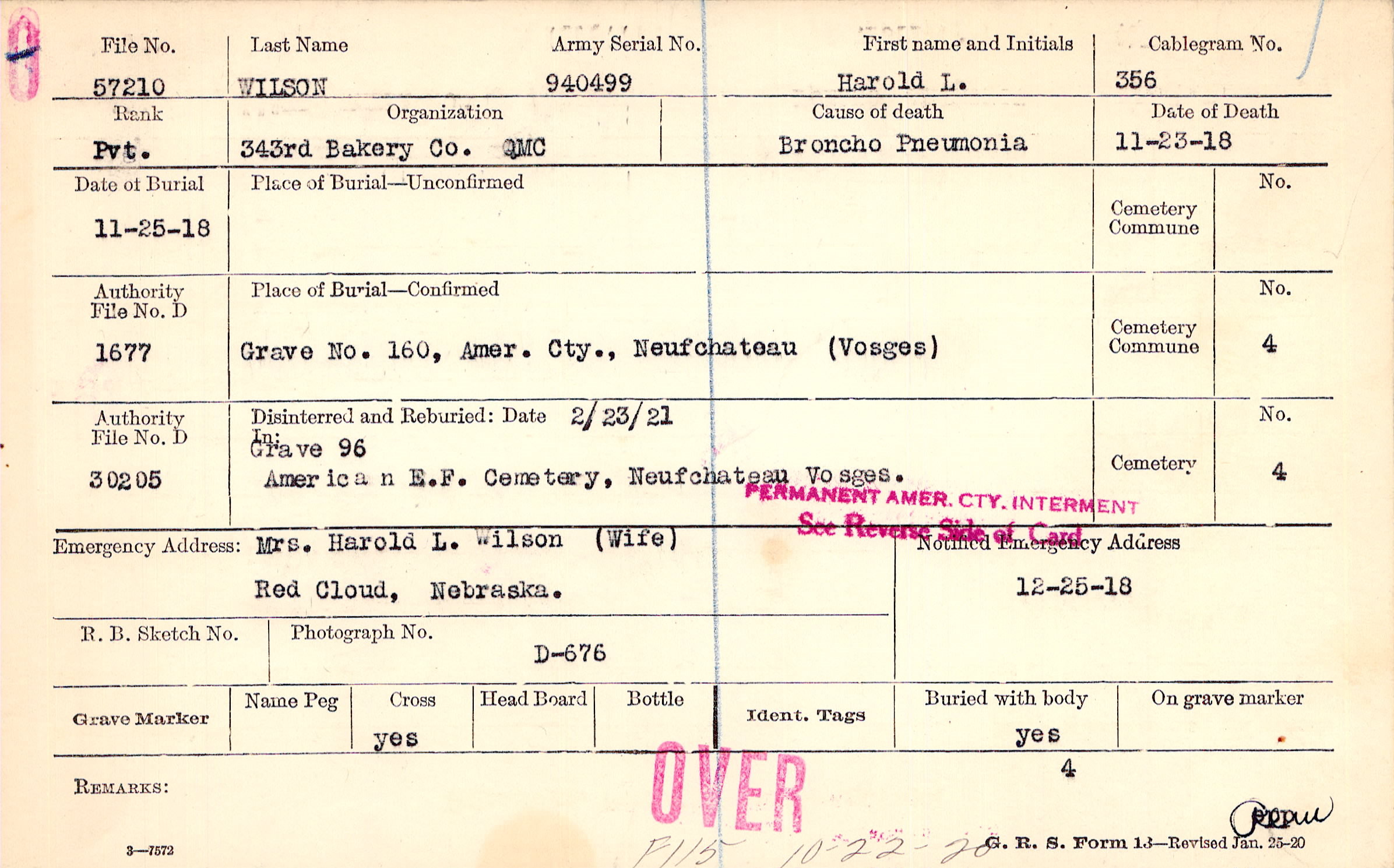 Mrs. Harold L. Wilson (Wife), Red Cloud, Nebraska.