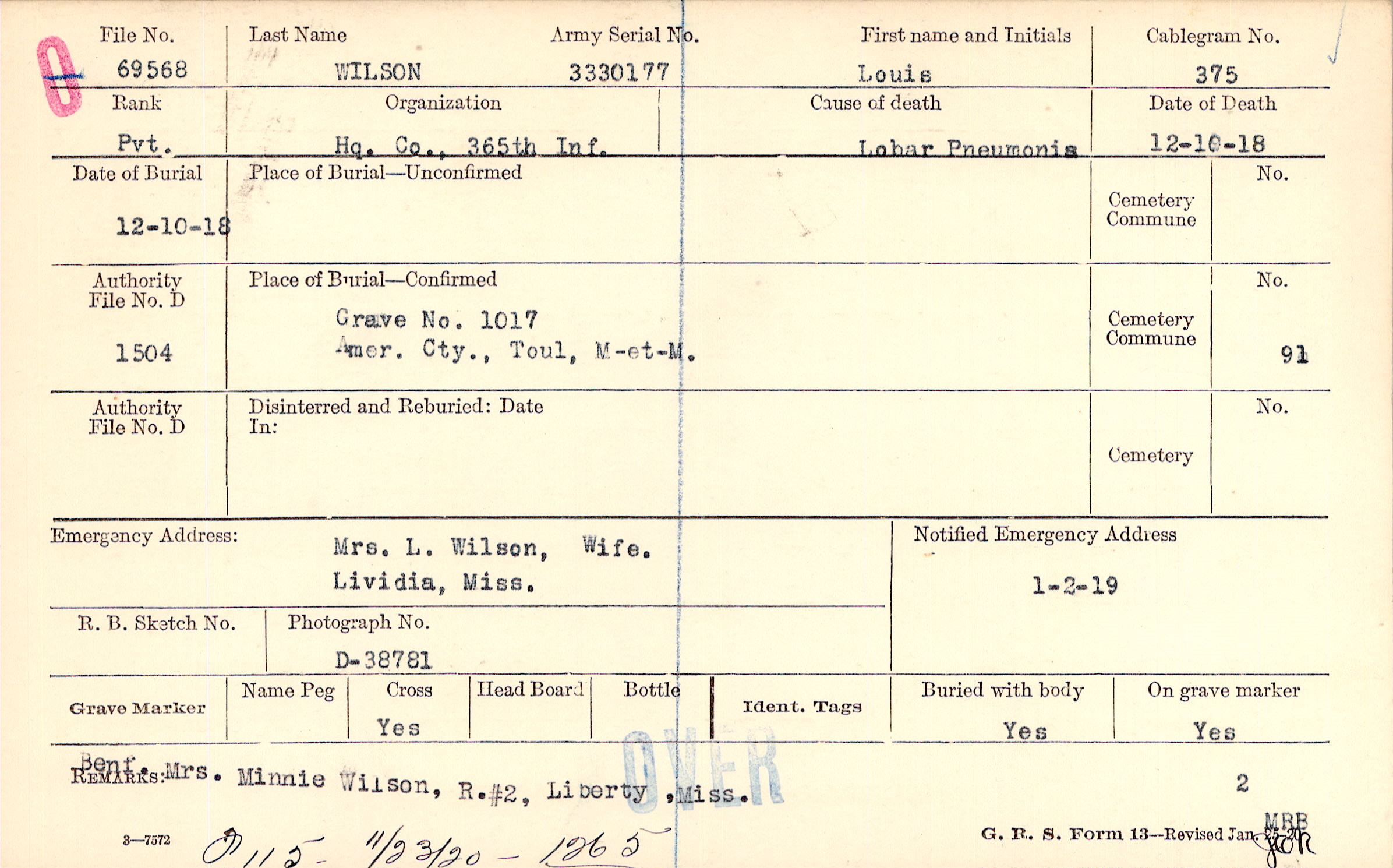 Grave 1017, Amer. Cty., Toul, M-et-M.