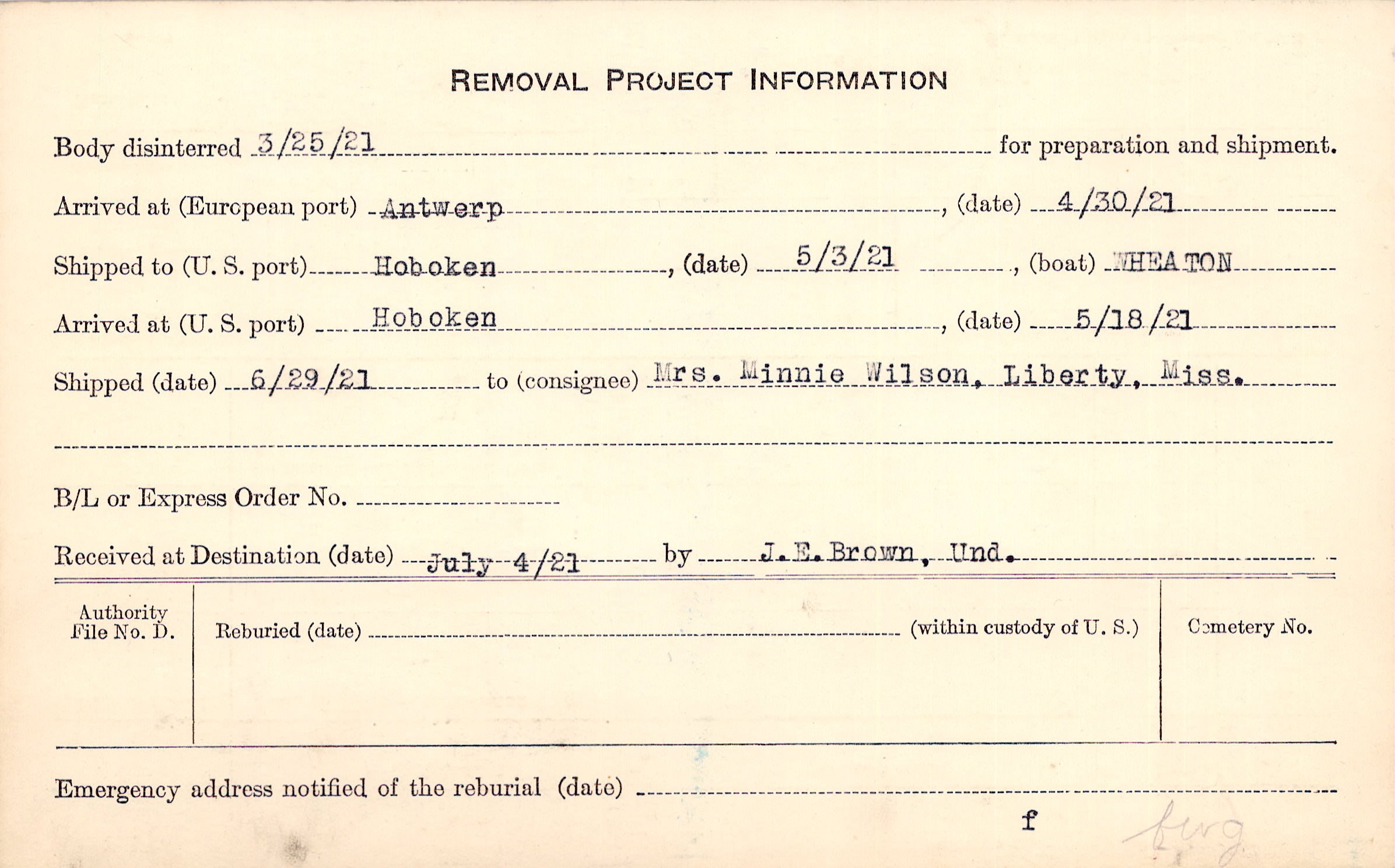 to Mrs. Minnie Wilson, Liberty, Miss.