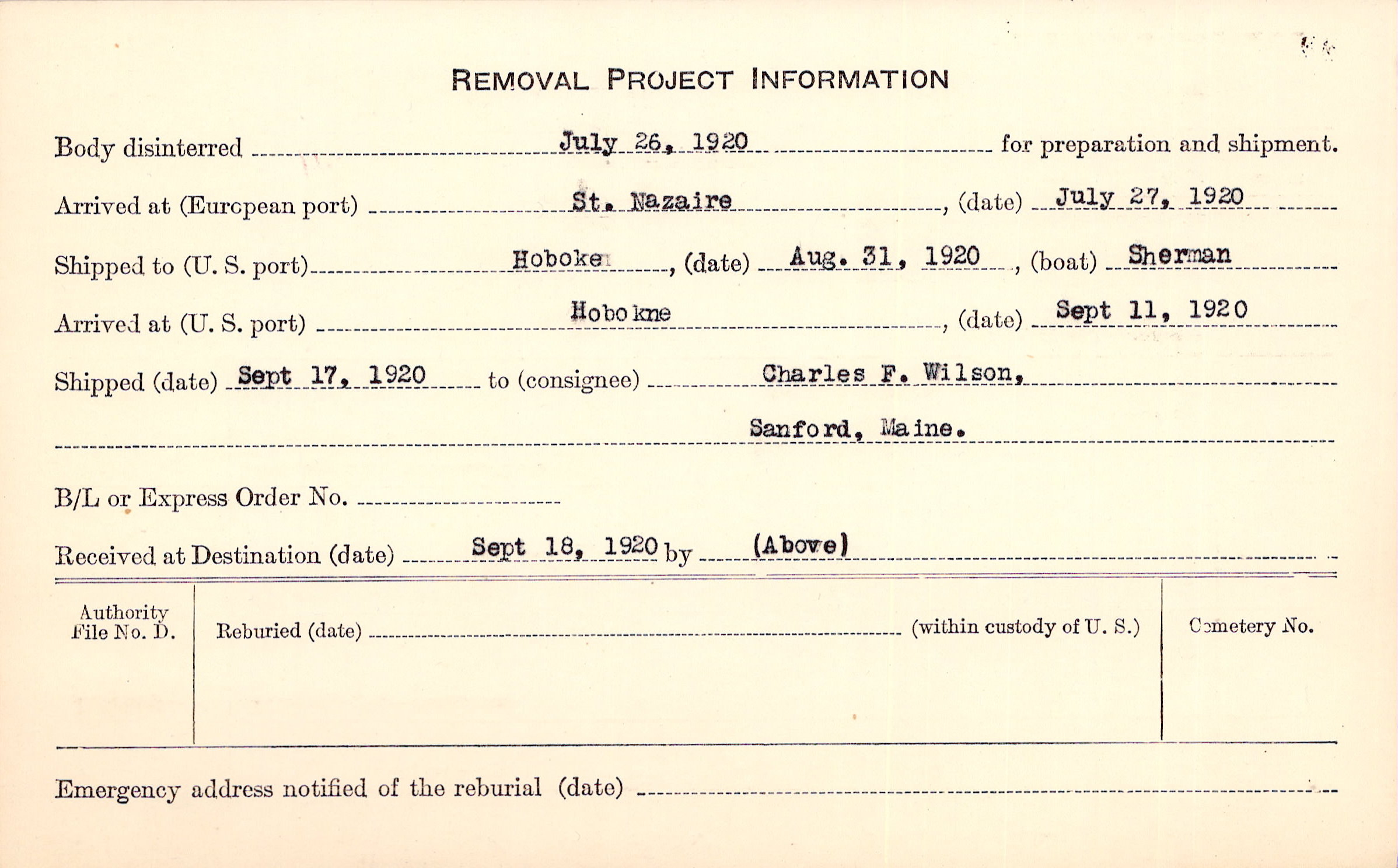 Charles Wilson, Father, Mechanic St., Sanford, Maine.