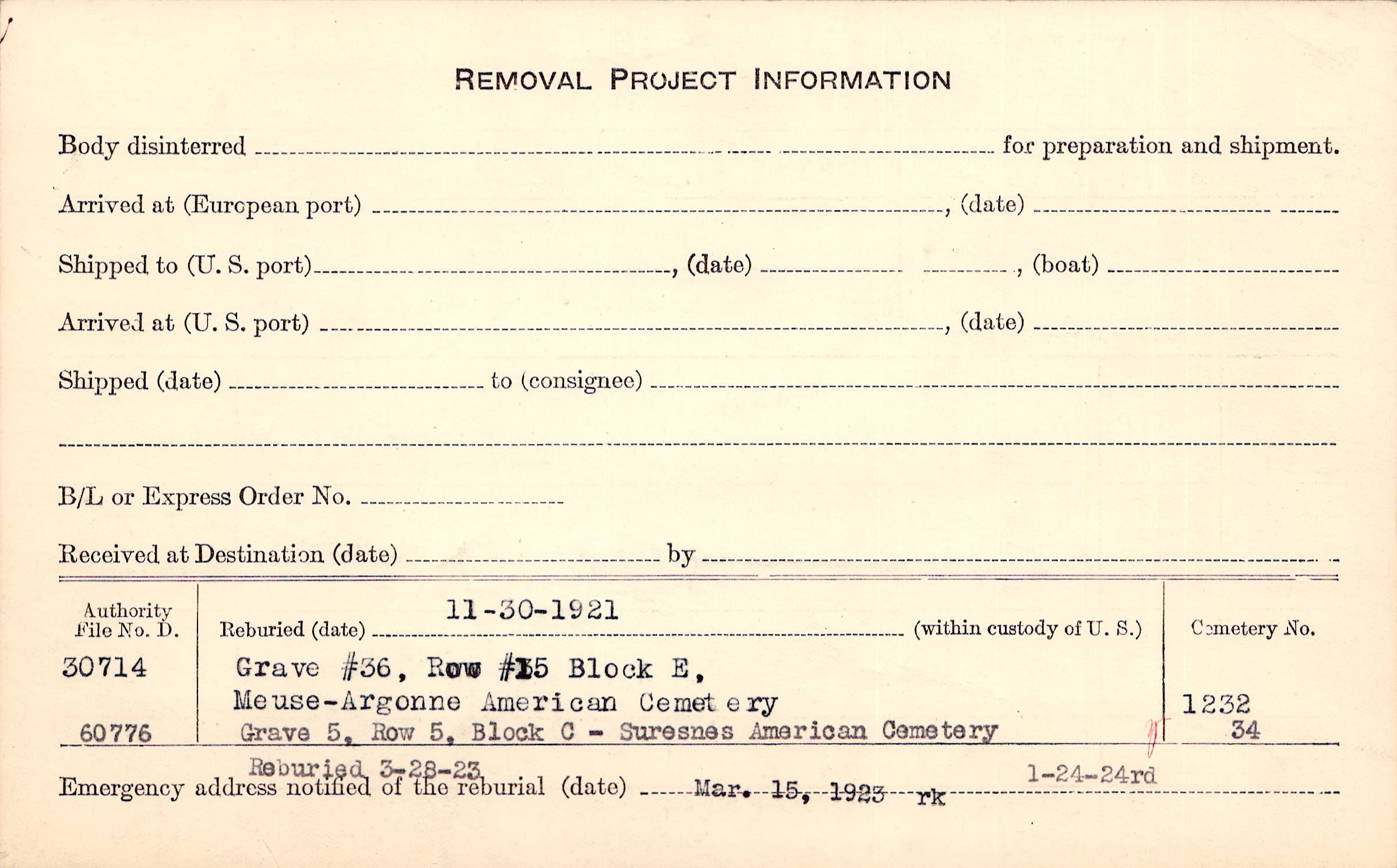 Grave 24,Amer. B/A Cty., Romagne-sous-Montfaucon, Meuse.