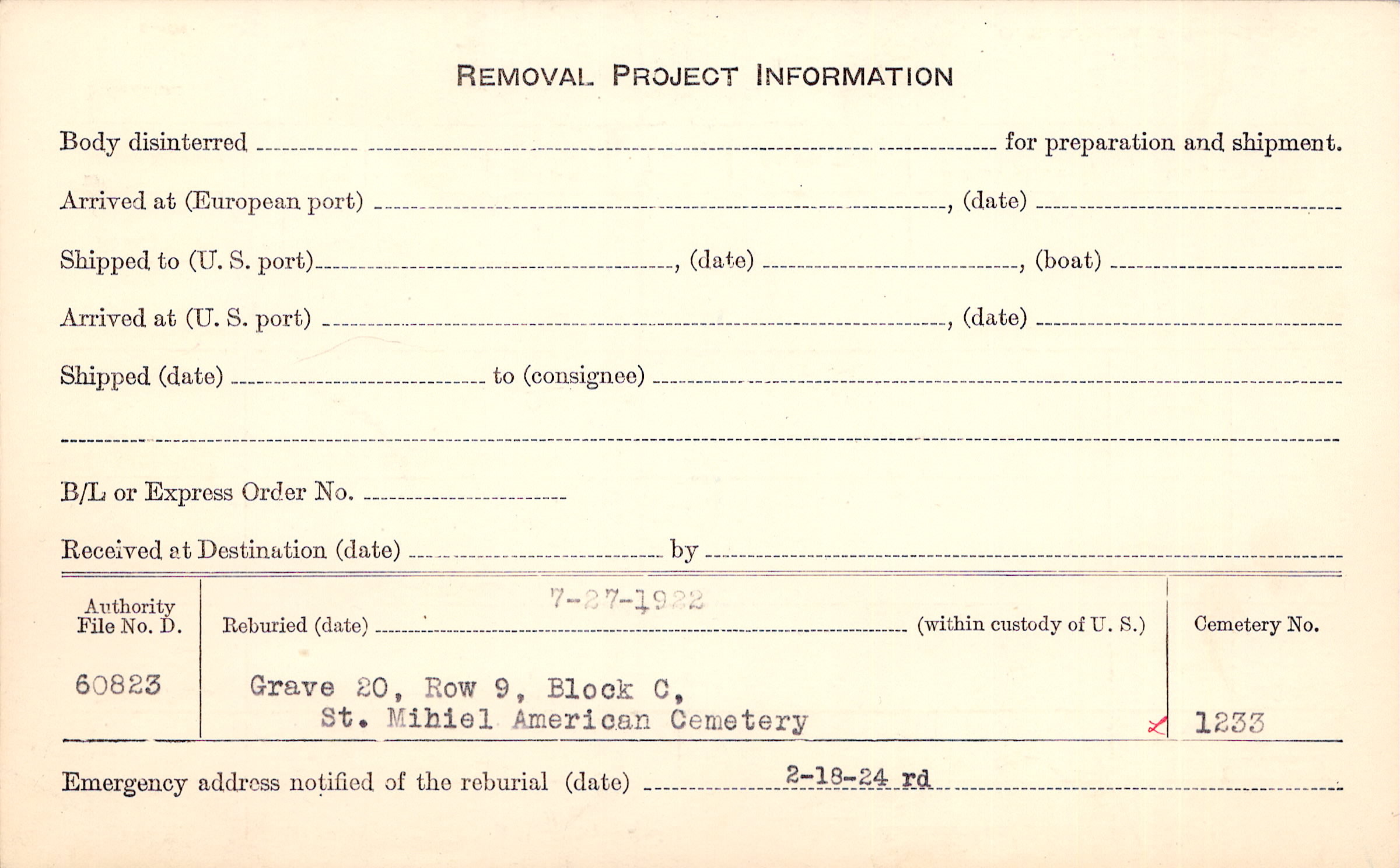 Grave 506, American Cty of Toul, Meurthe et Moselle.