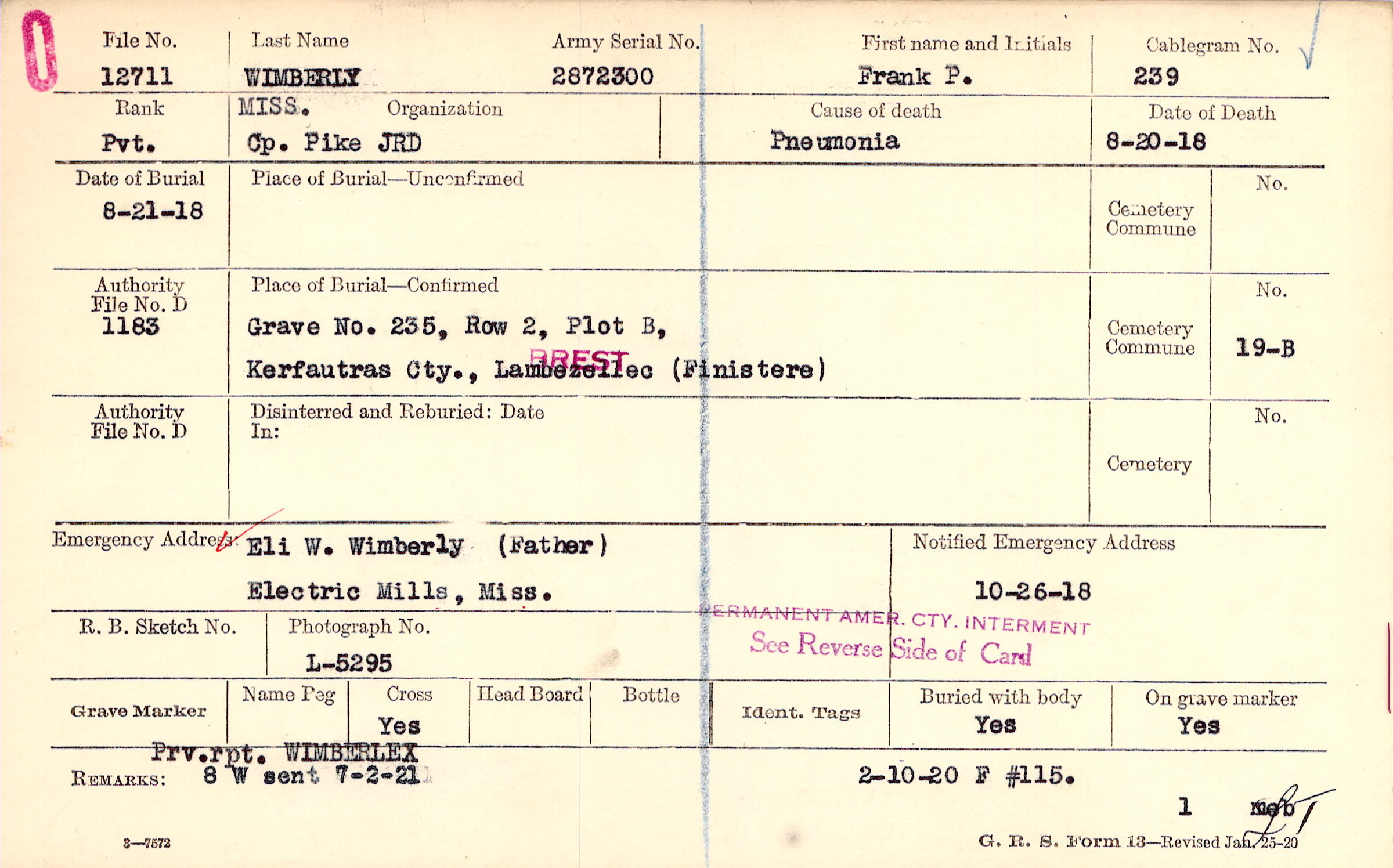Grave 235, Row 2, Plot B, Kerfautras Cty., Lambezellec (Finistere)