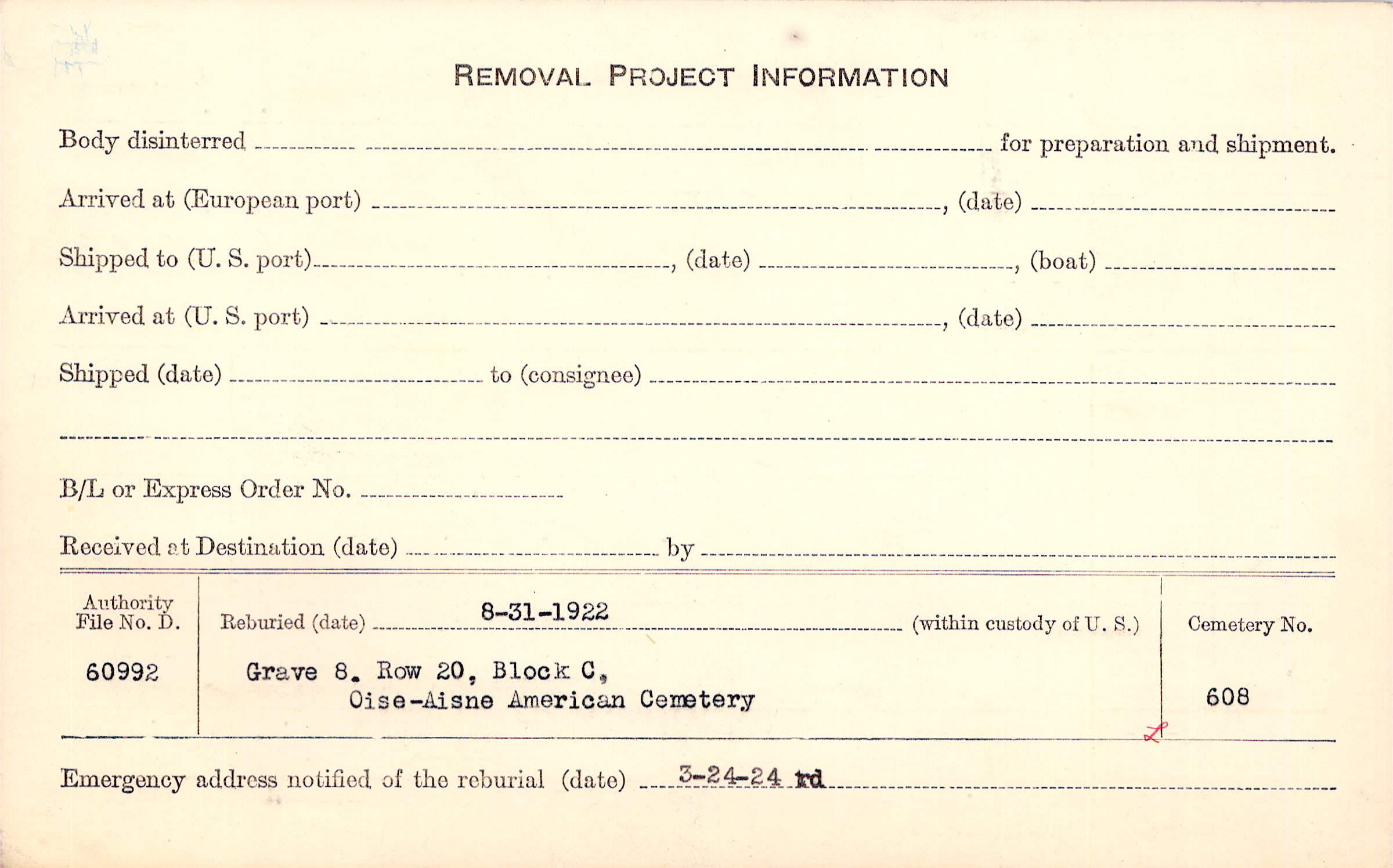 | Permanent Burial in Foreign Cemetery |