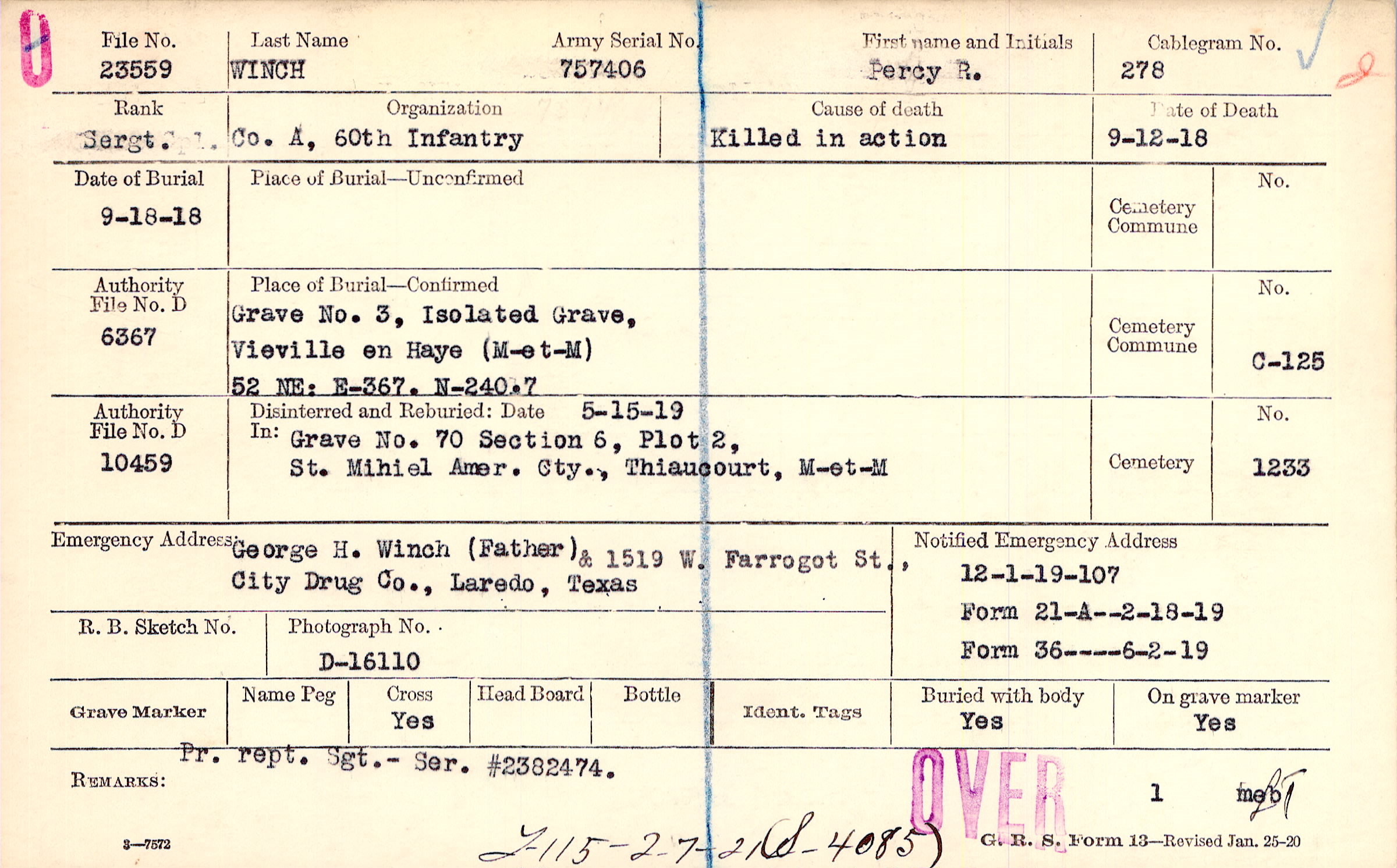 George H. Winch (Father, City Drug Co., Laredo, Texas, & 1519 W. Farrogot St.,