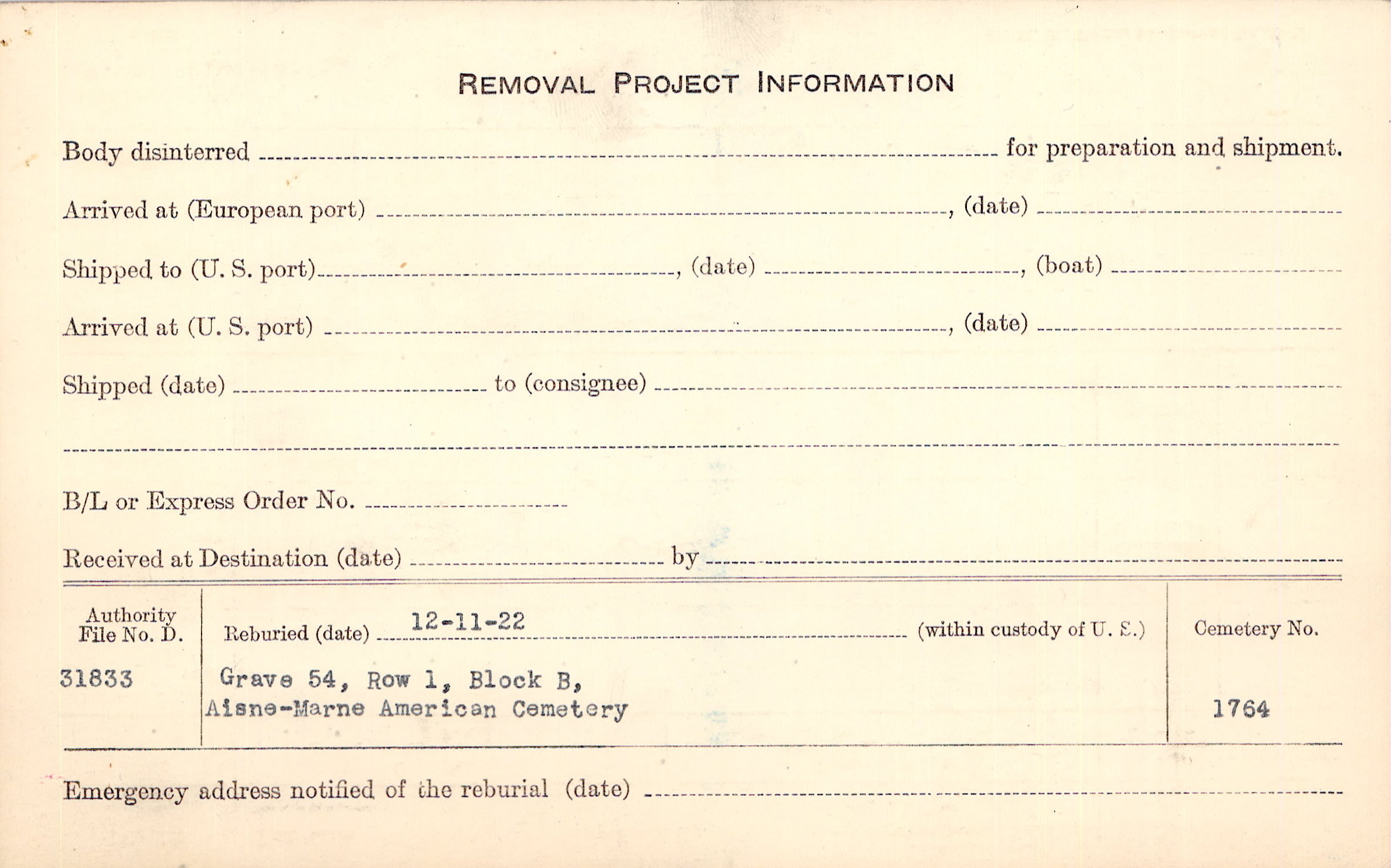 | Permanent Burial in Foreign Cemetery |
