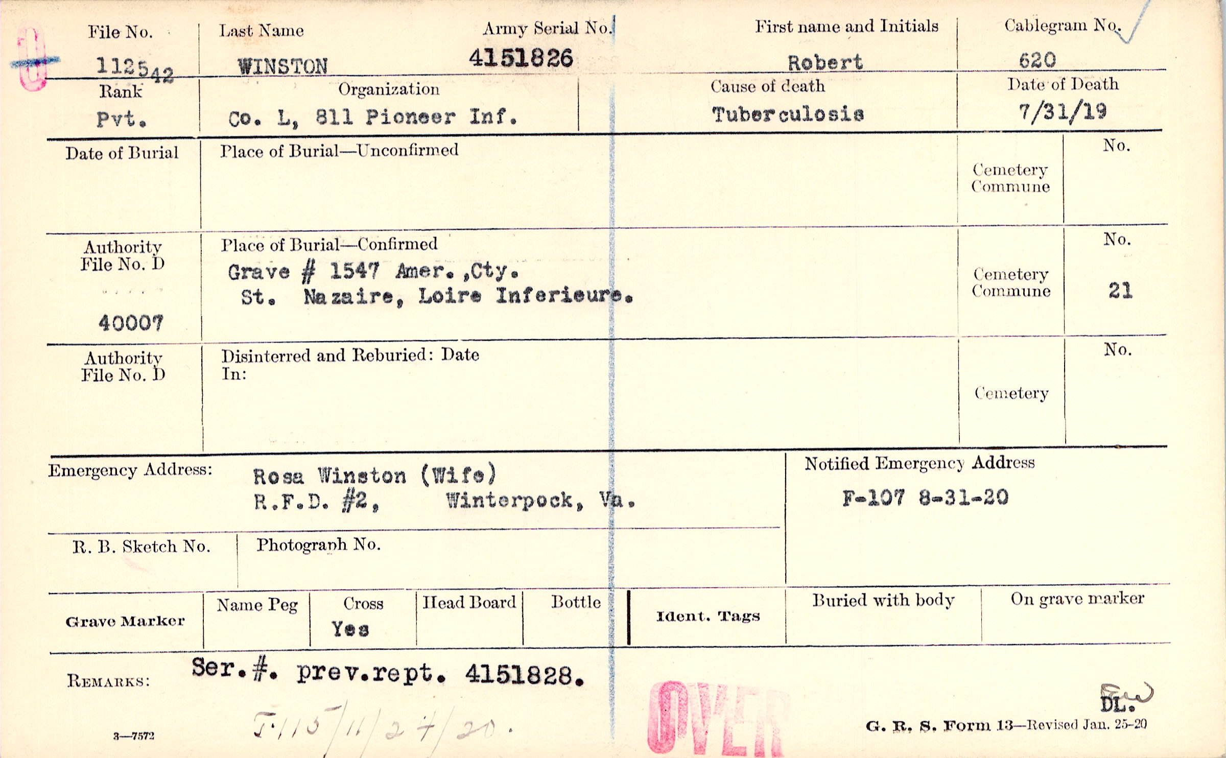 Grave # 1547, Amer. Cty., St. Nazaire, Loire Inferieure.