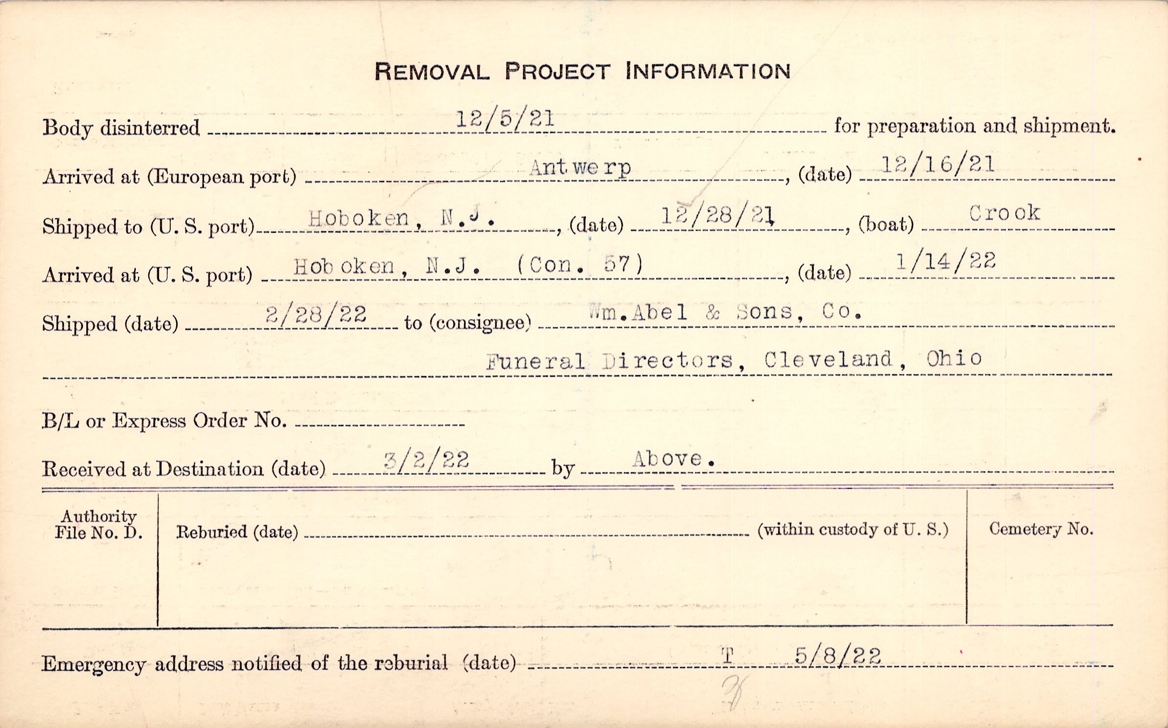 to Wm. Abel & Sons, Co. Funeral Directors, Cleveland, Ohio