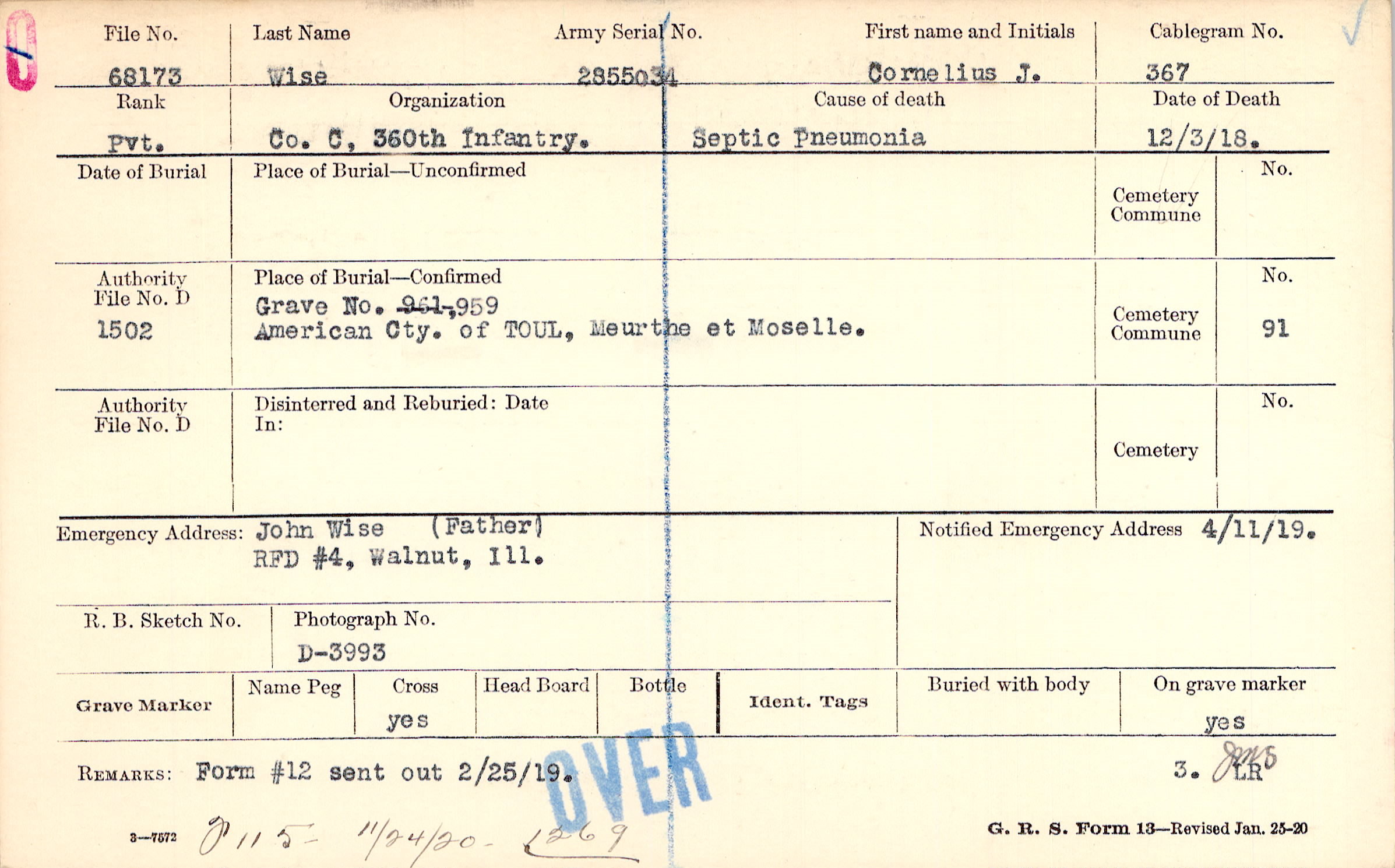 Grave 959, American Cty., of TOUL, Meurthe et Moselle.