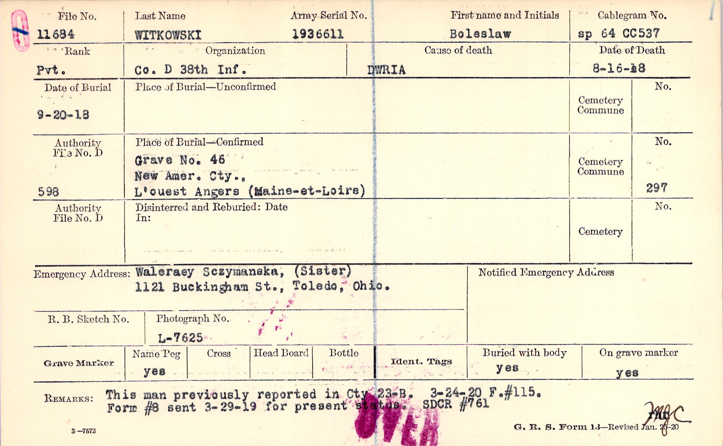 Grave 46, New Amer. Cty., L'ouest Angers, Maine-et-Loire