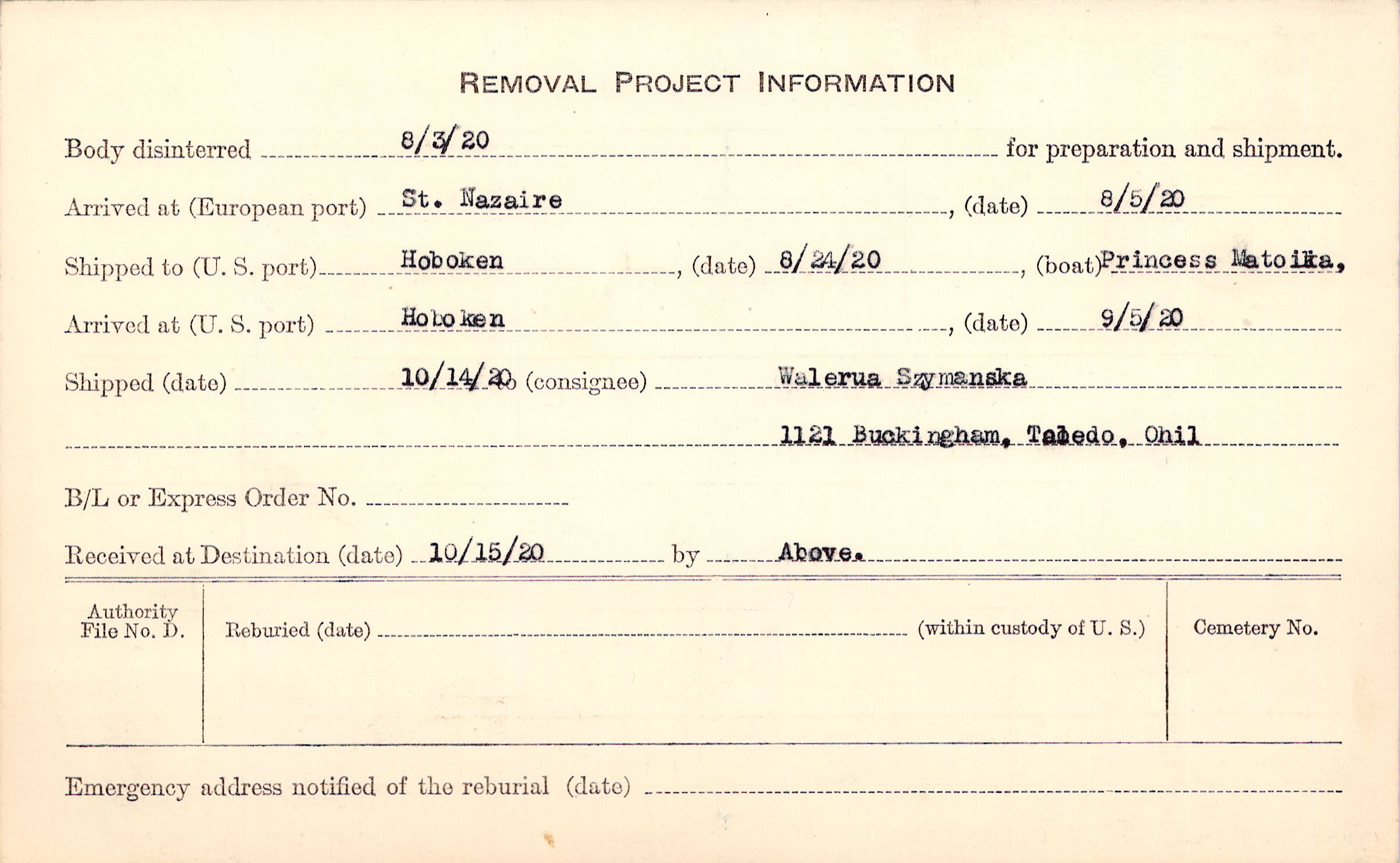 Waleraey Sczymanska, (Sister), 1121 Buckingham St., Toledo, Ohio.