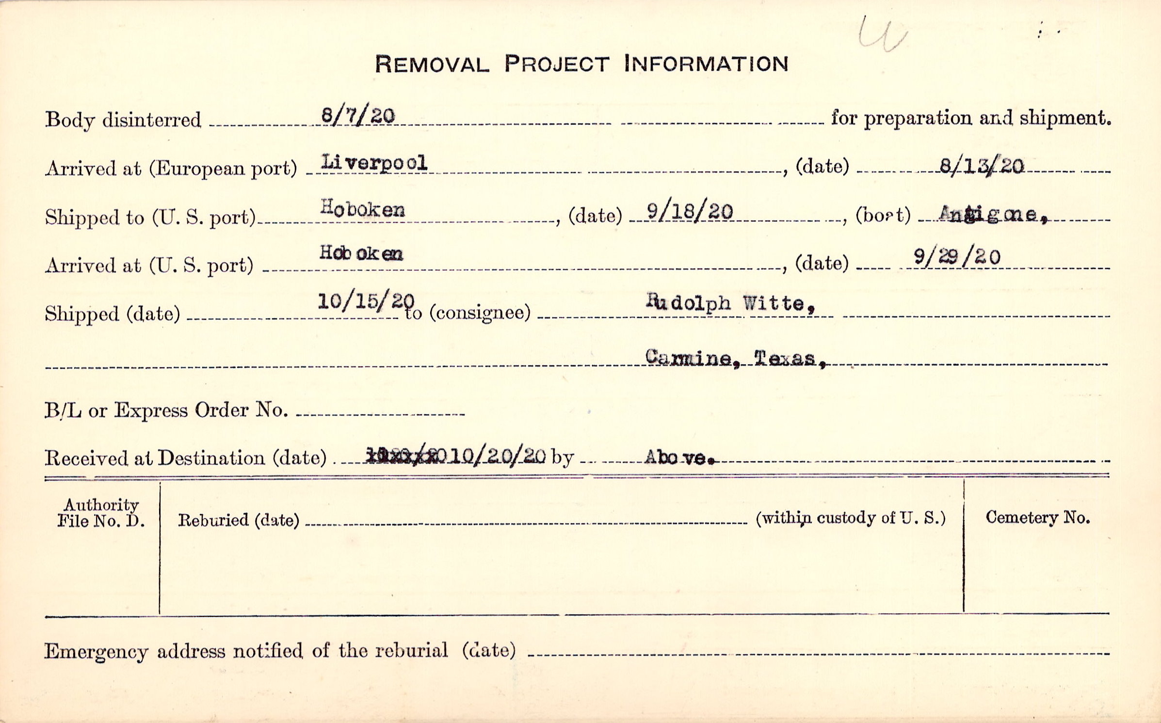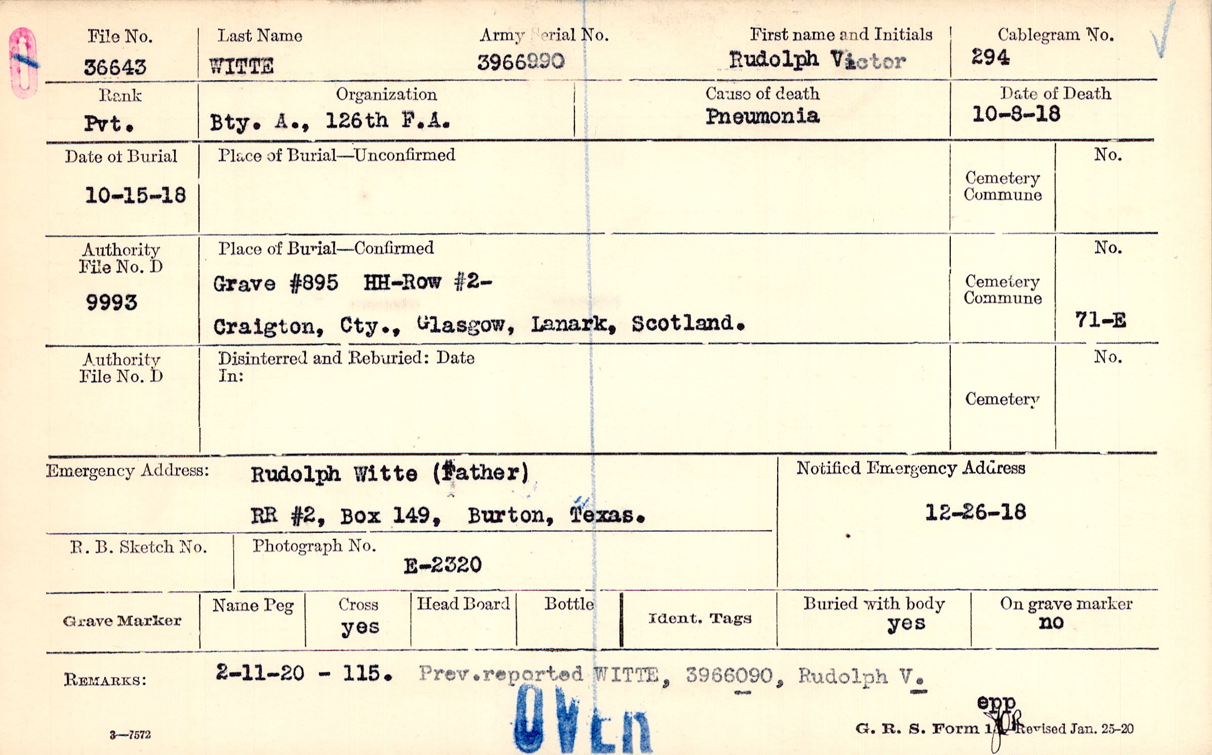 Rudolph Witte (Father), RR #2, Box 149, Burton, Texas.